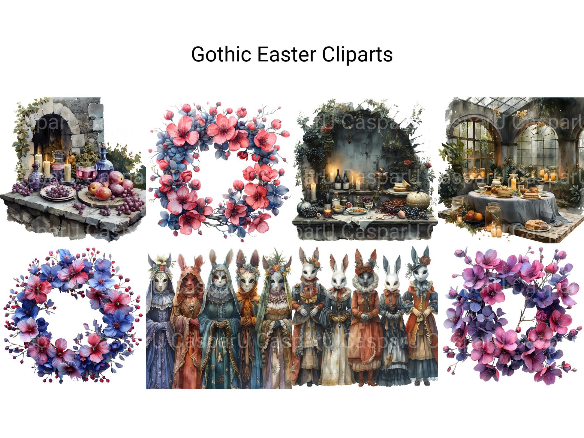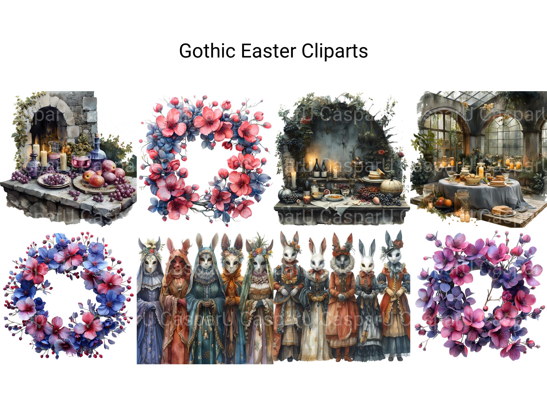 Embrace the darkly elegant aesthetic of Gothic Easter digital clip art, featuring gothic-inspired illustrations, intricate designs, and dramatic motifs that capture the allure of Gothic architecture and artistry. These captivating images infuse Easter with a touch of mystery and romance, perfect for adding a Gothic twist to your projects. Let Gothic Easter transport you to a world of dark beauty and Gothic charm, inviting viewers to explore the enigmatic side of Easter celebrations.