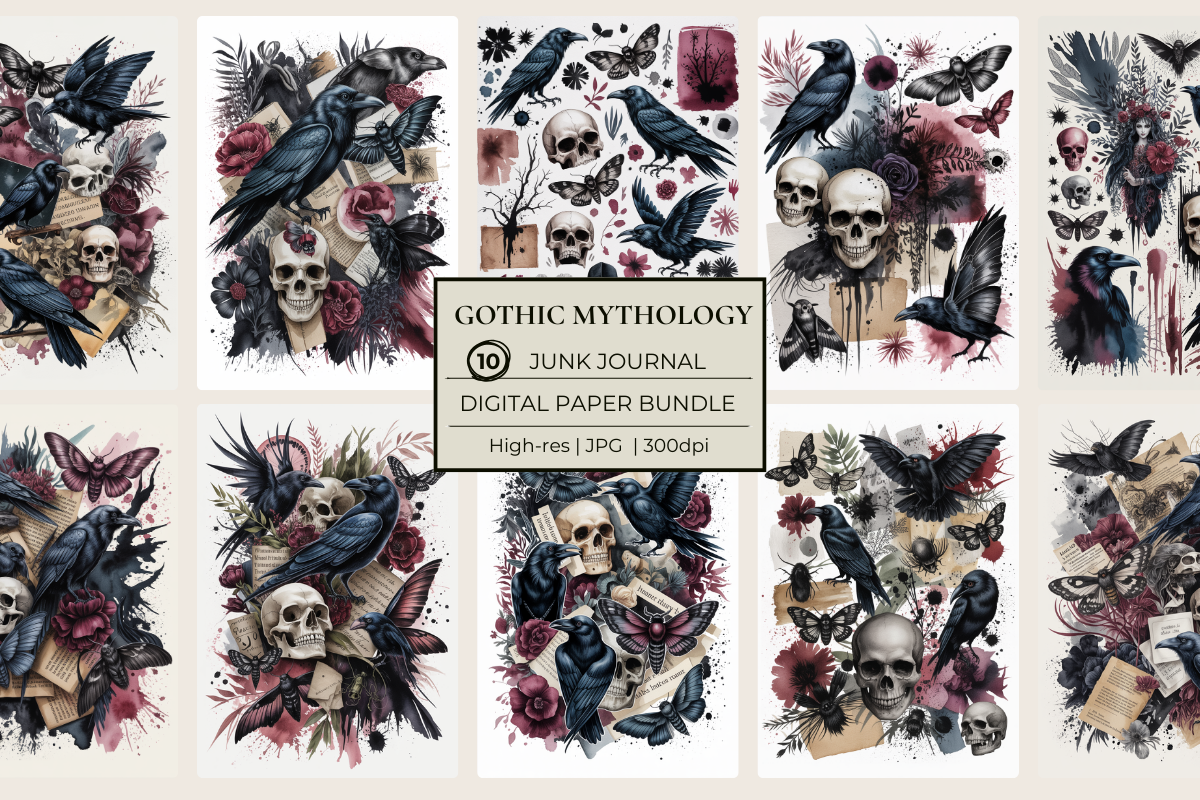 Explore the allure of the unknown with our Gothic Mythology Junk Journal Papers, perfect for creating spellbinding scrapbooks and artistic masterpieces.