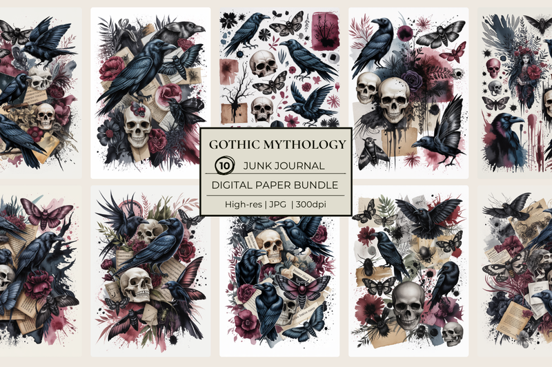 Transform your projects with our Gothic Mythology Papers, offering a captivating blend of myth and artistry for all your junk journaling needs.