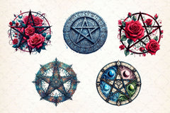 Mystify with this Gothic Pentacles Clipart Bundle, featuring dark spiritual designs, perfect for alternative mystical crafts.