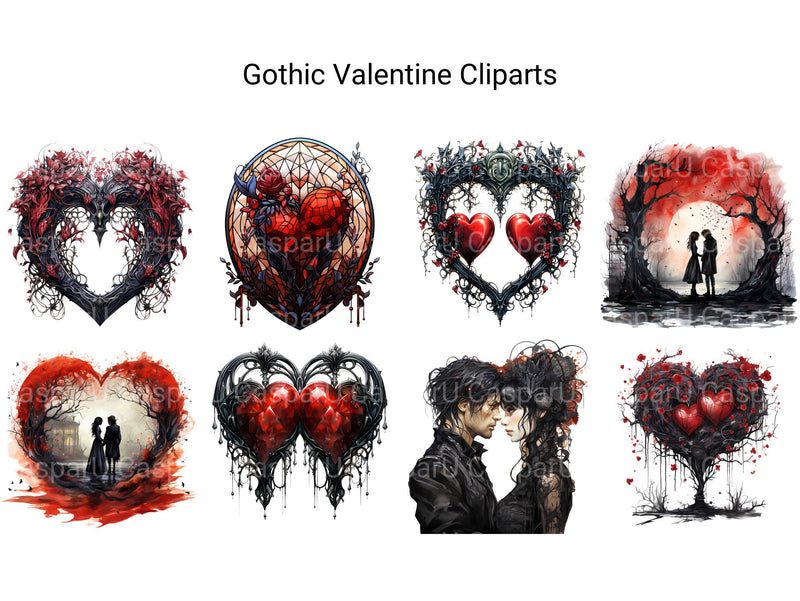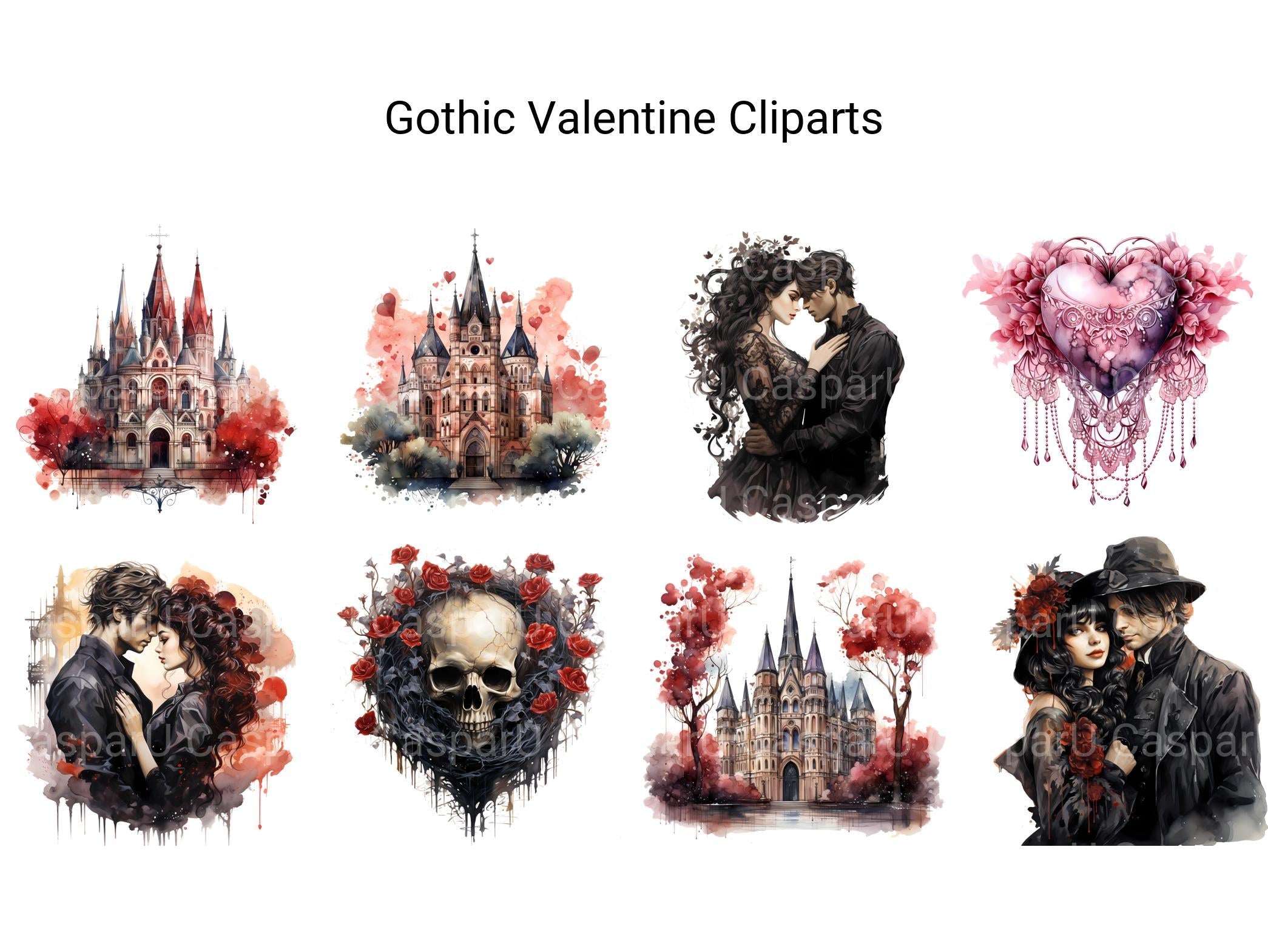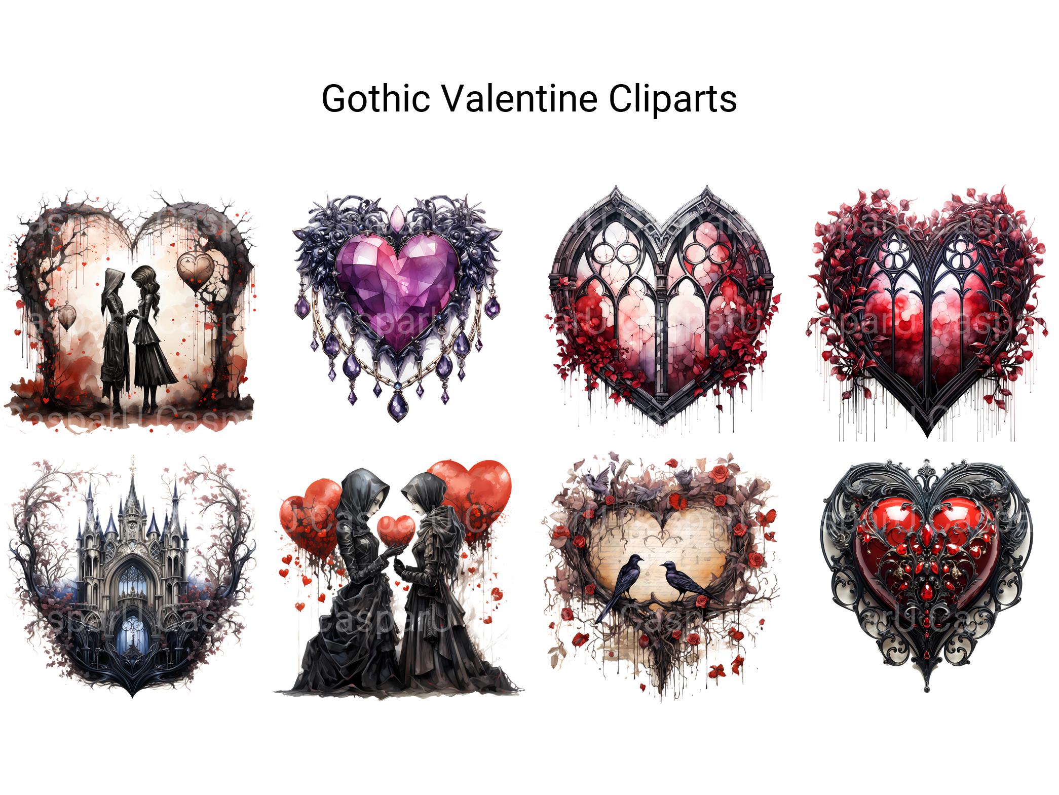 Embrace the dark allure of romance with digital clip art featuring gothic-themed Valentine's Day illustrations. From mysterious roses to haunting motifs, these captivating images offer a unique and edgy twist on Valentine's Day, perfect for those who appreciate the beauty of darkness and passion. Let the gothic aesthetic add a touch of drama and intrigue to your projects, inviting viewers to explore love's shadowy depths in a spellbinding and captivating way.