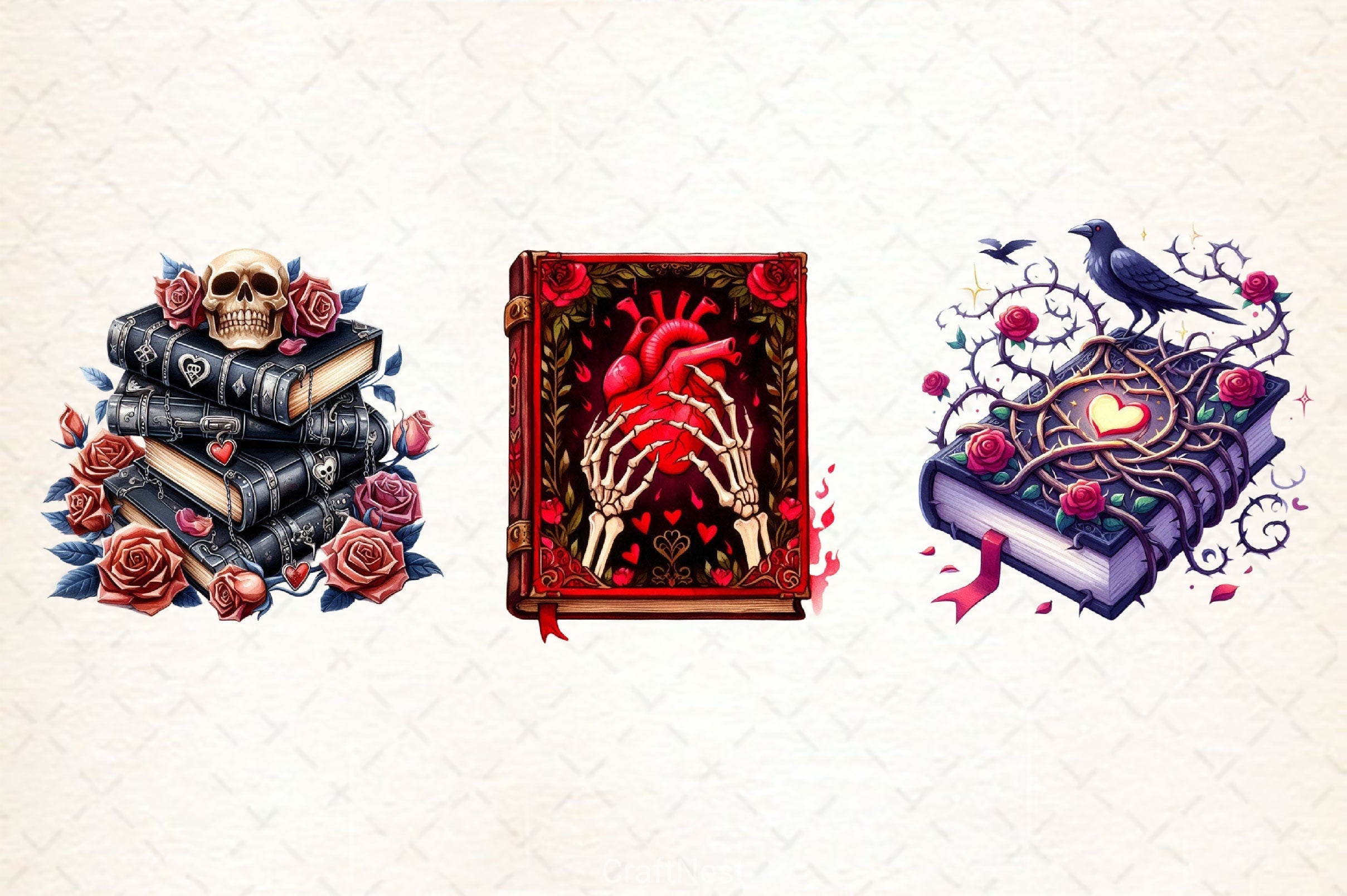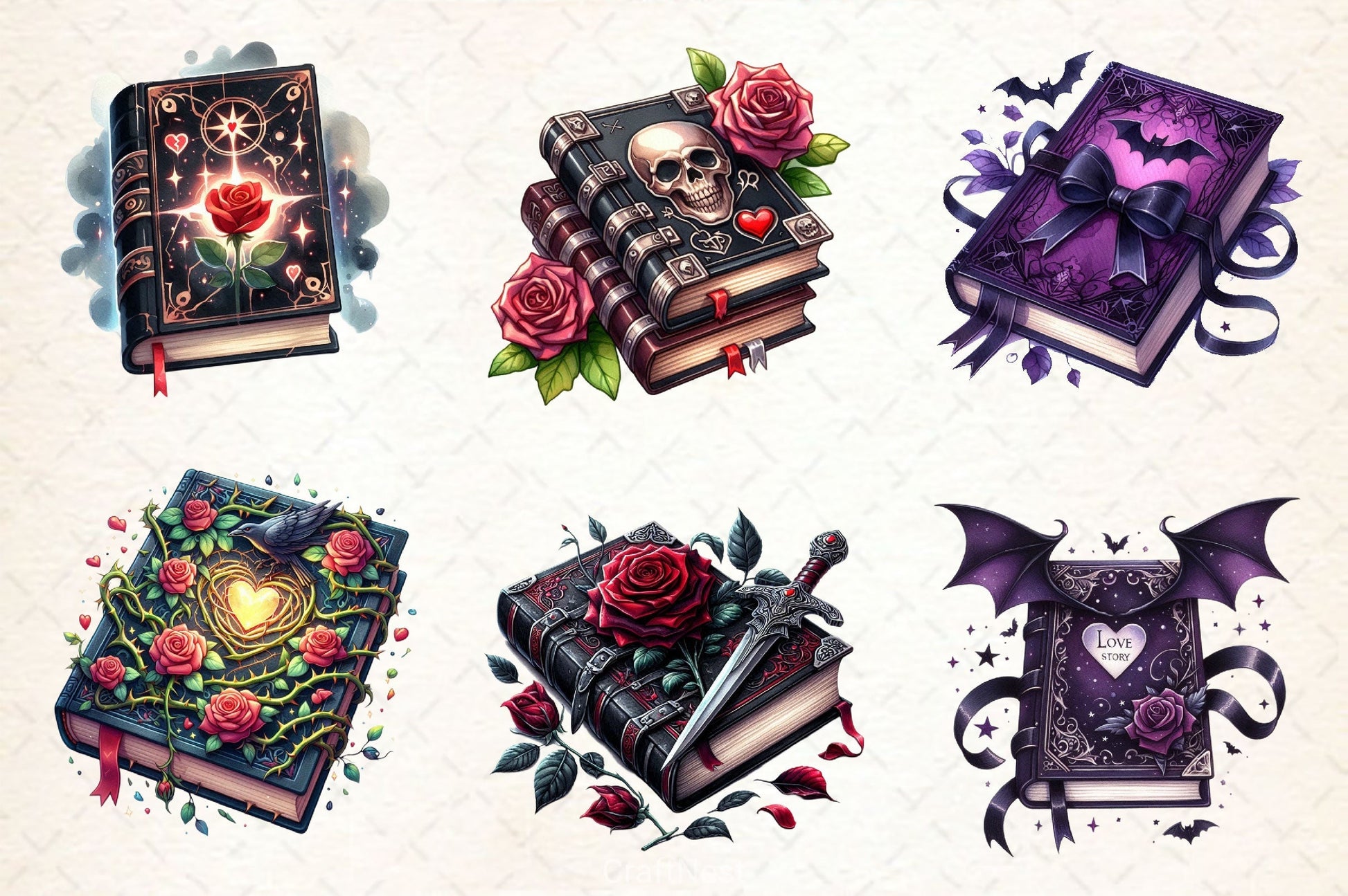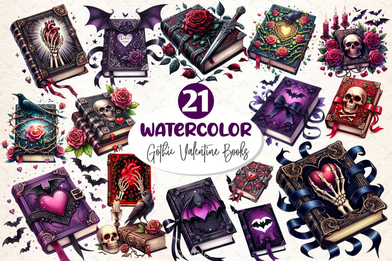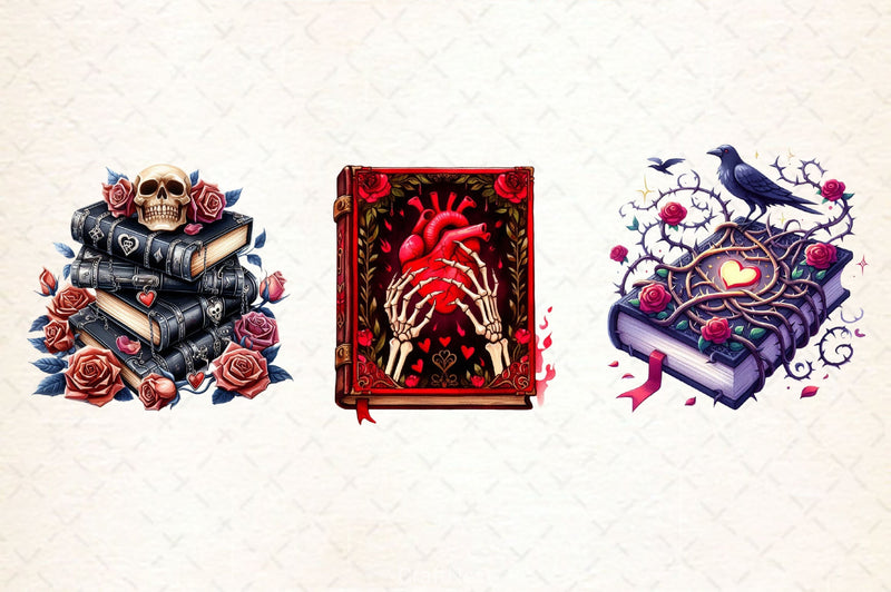 Gothic Valentine's Day Books Clipart Bundle 1