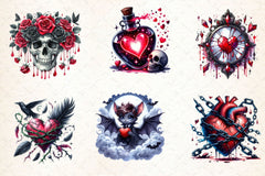 Dark gothic Valentine's Day elements for alternative romantic projects.