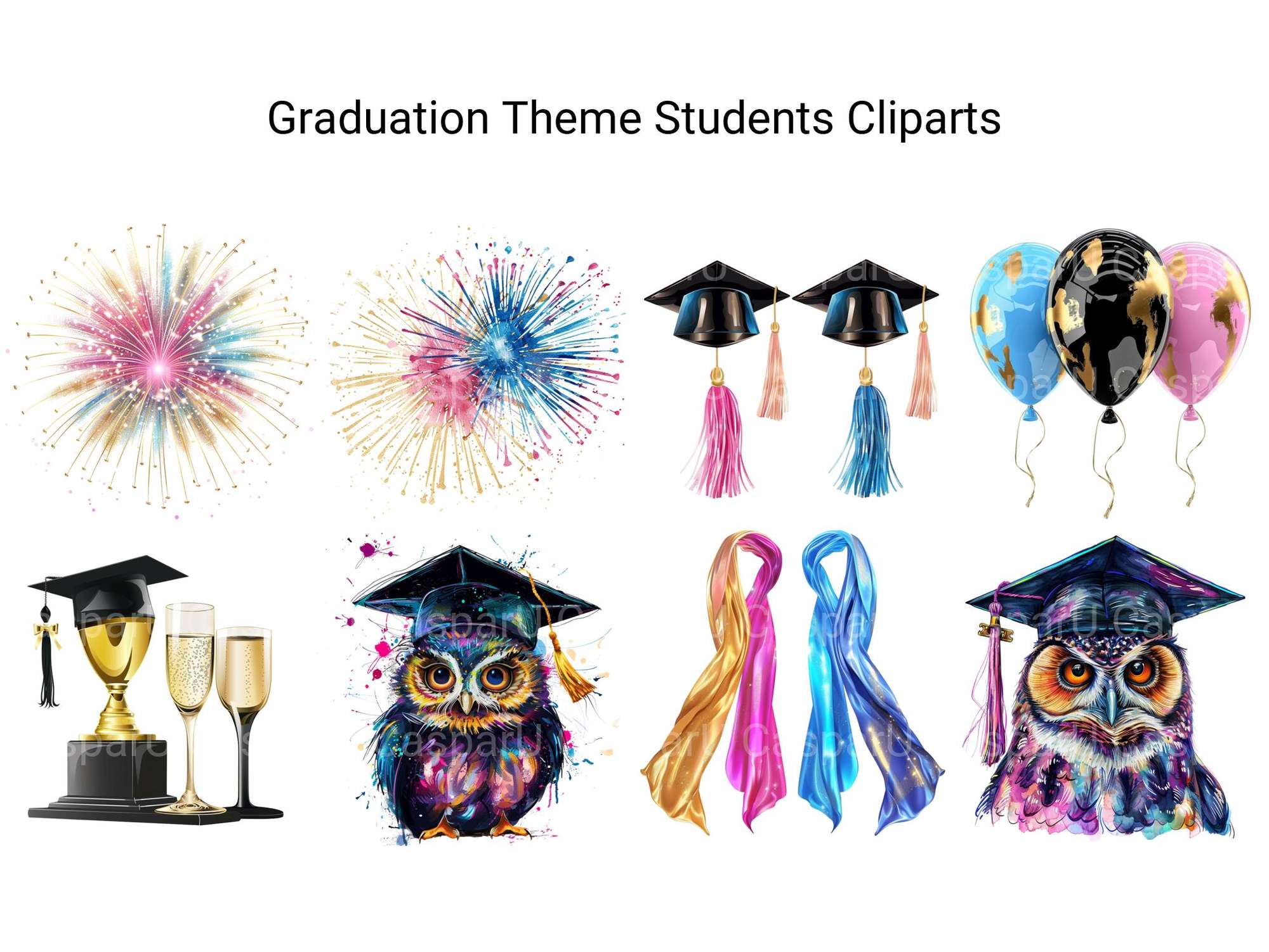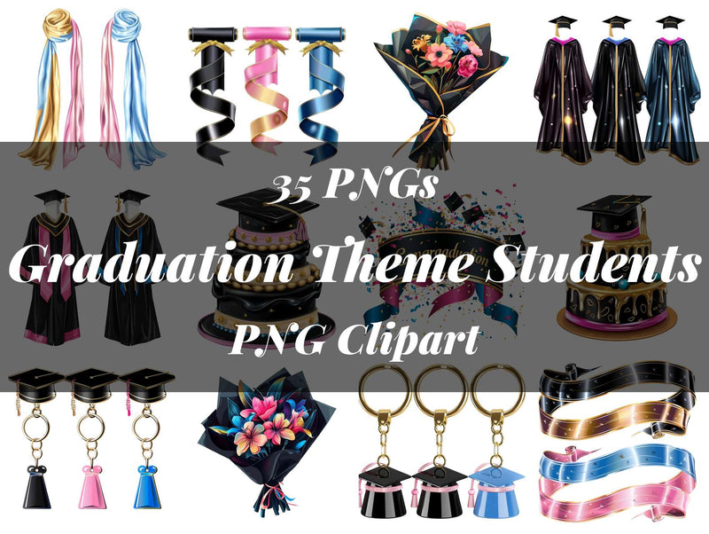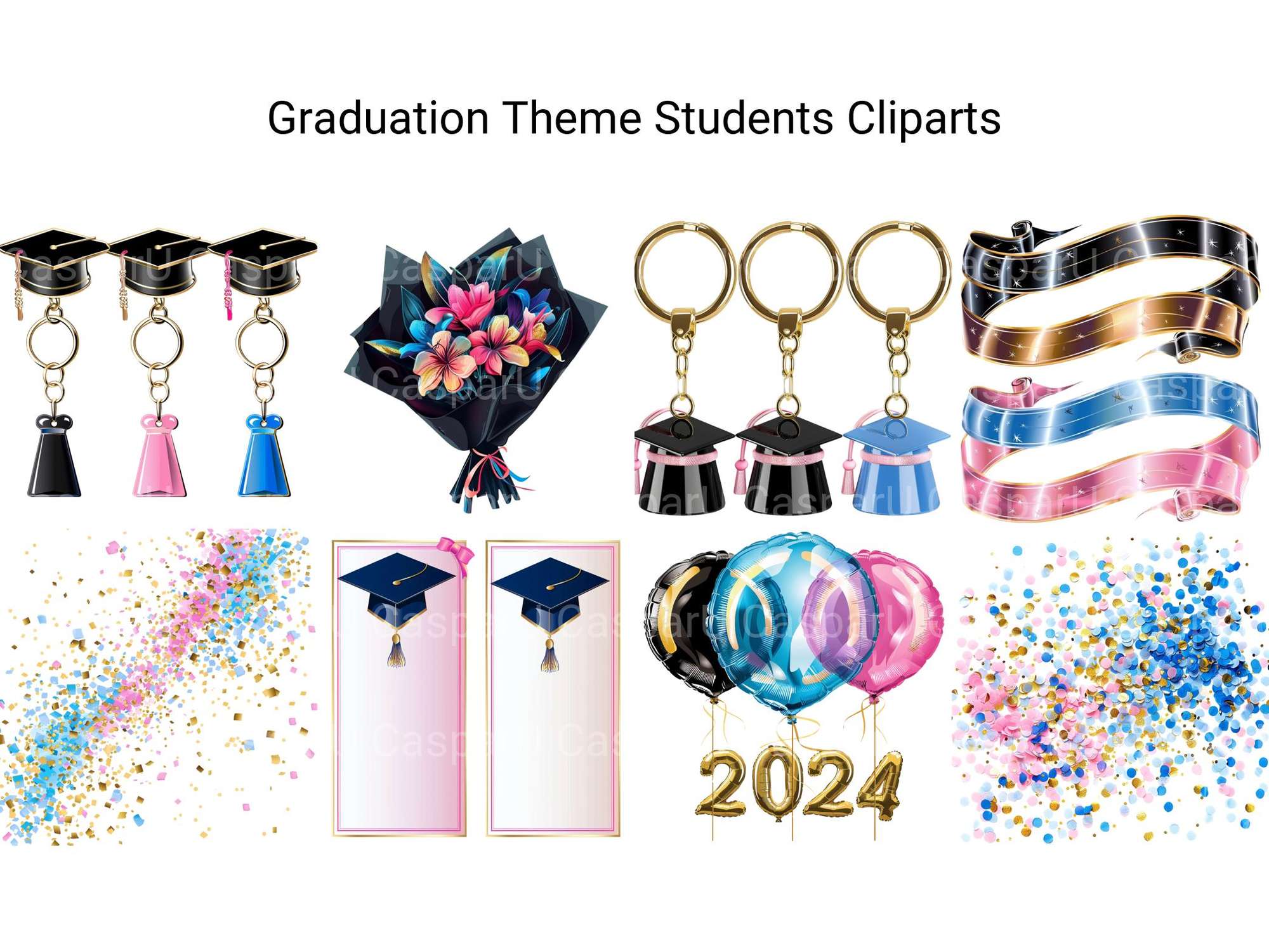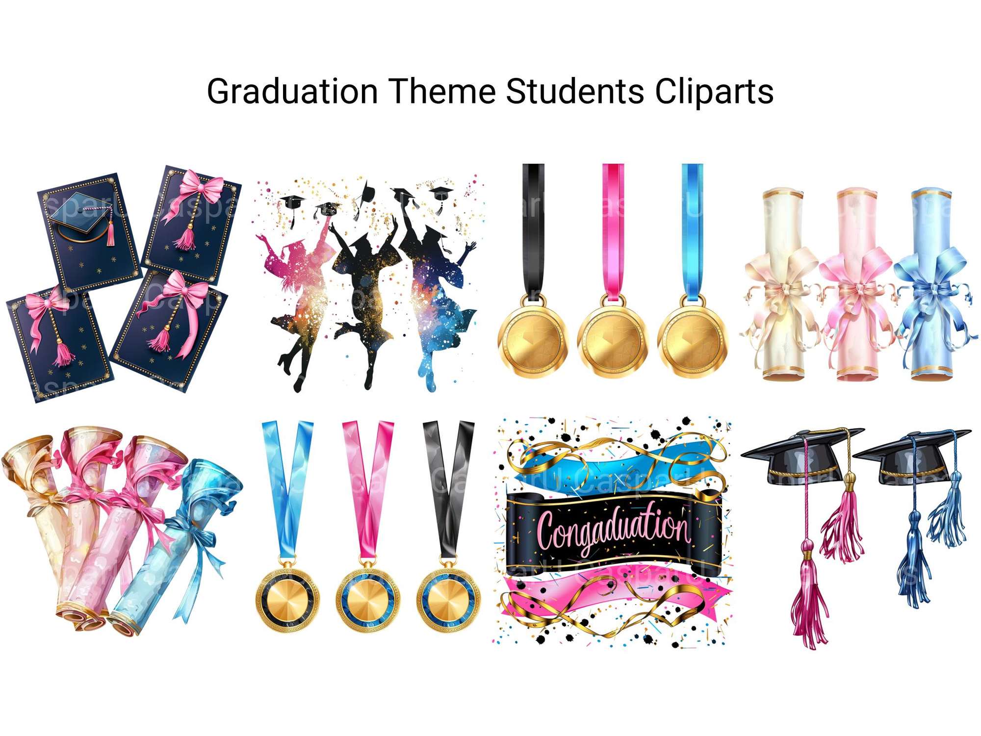 Celebrate success with this Graduation Theme Clipart bundle, featuring festive designs, perfect for graduation projects.