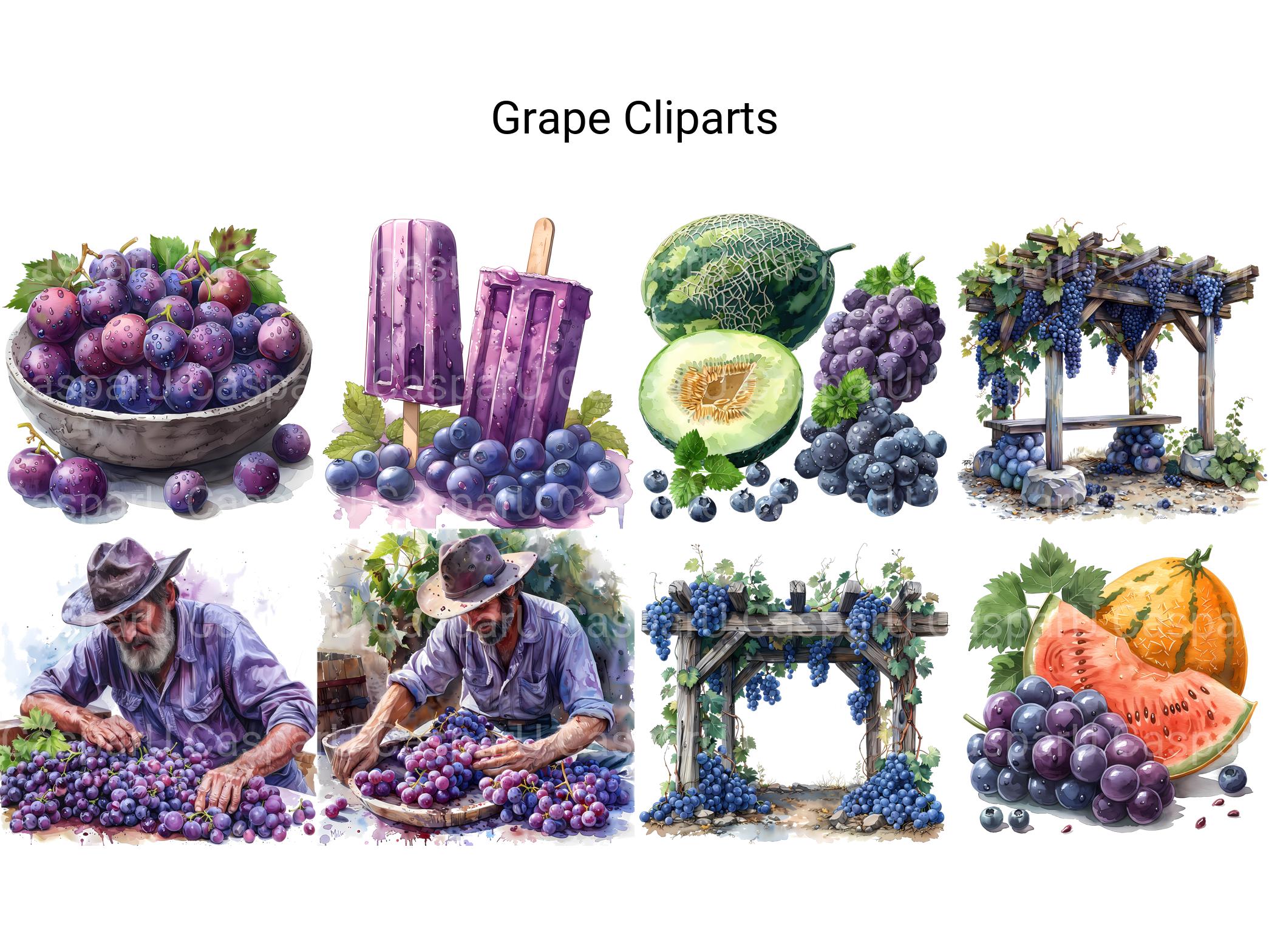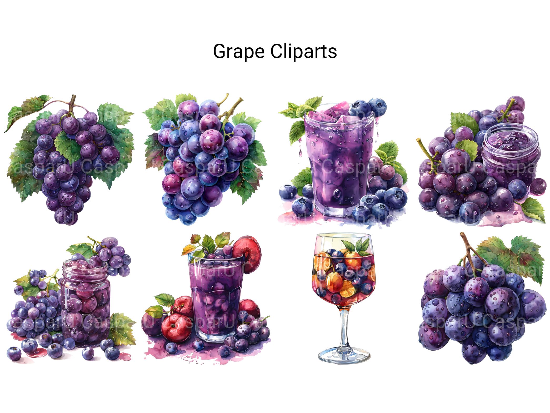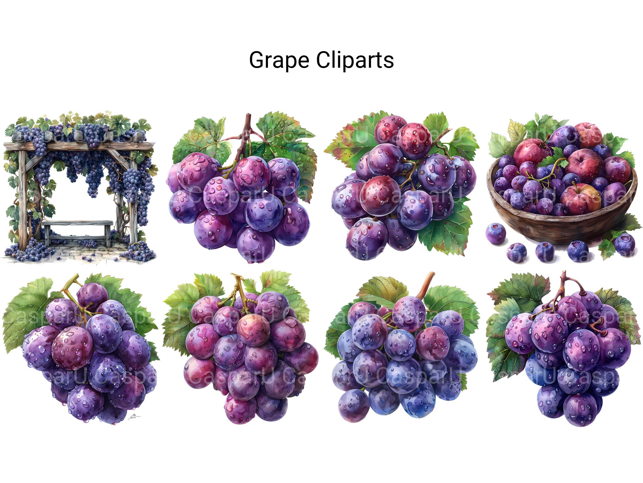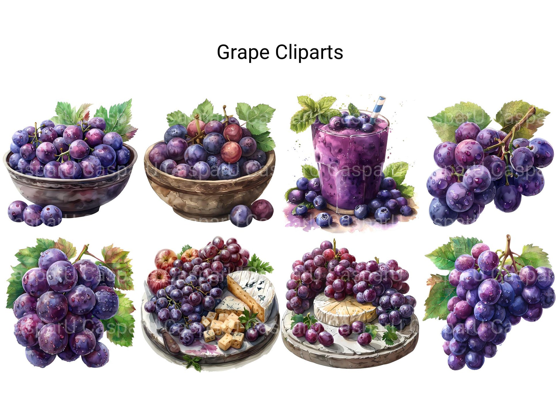 Enhance your designs with our Grape clipart. Featuring detailed illustrations of ripe grapes in various shades, this clipart adds a fresh and natural element to your projects. Perfect for fruit-themed or garden-inspired designs.