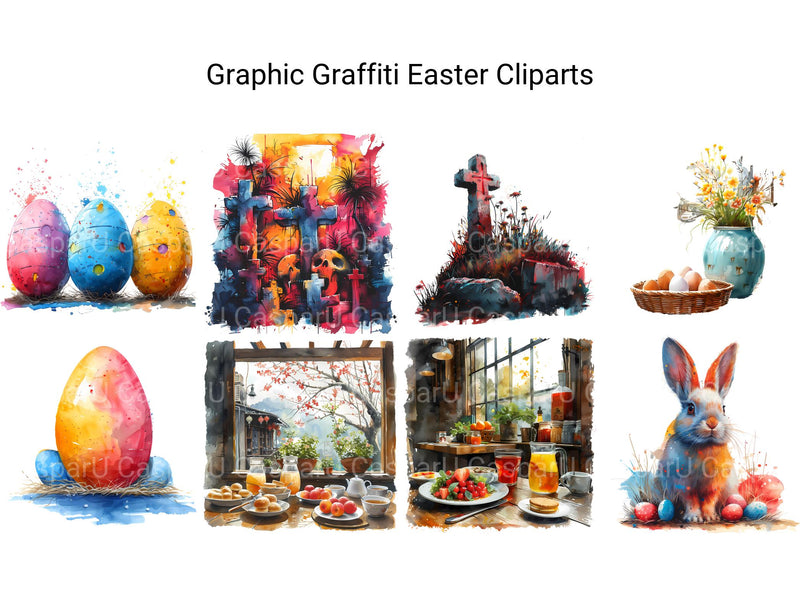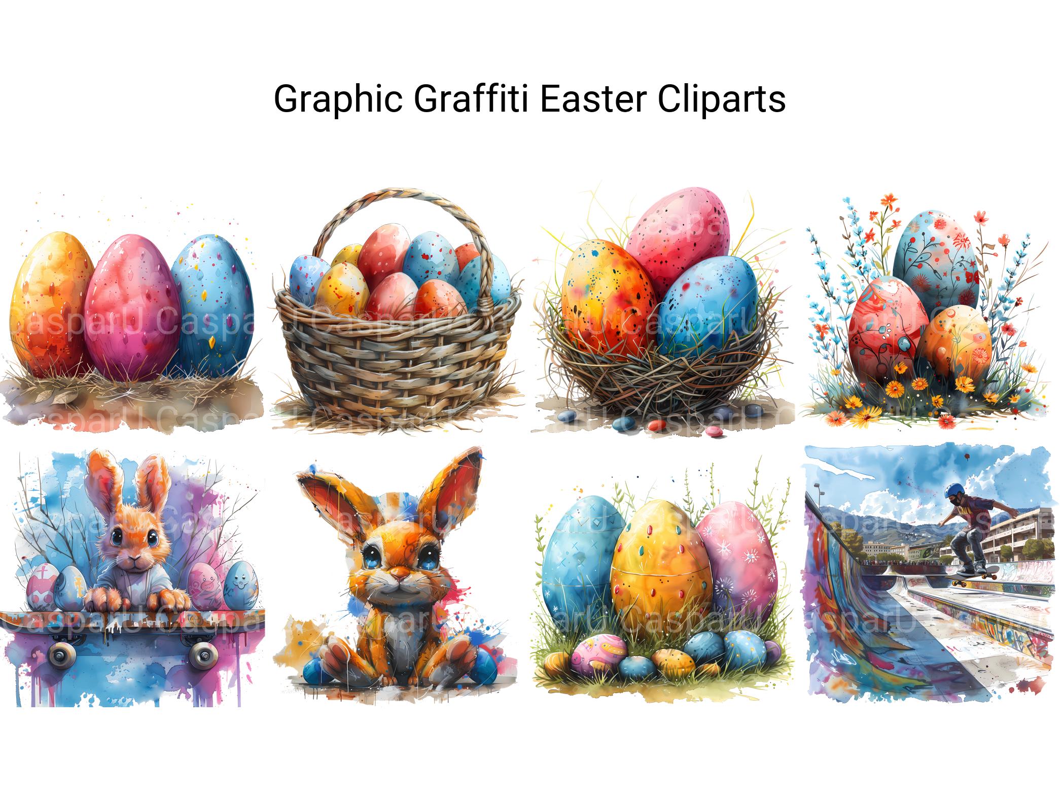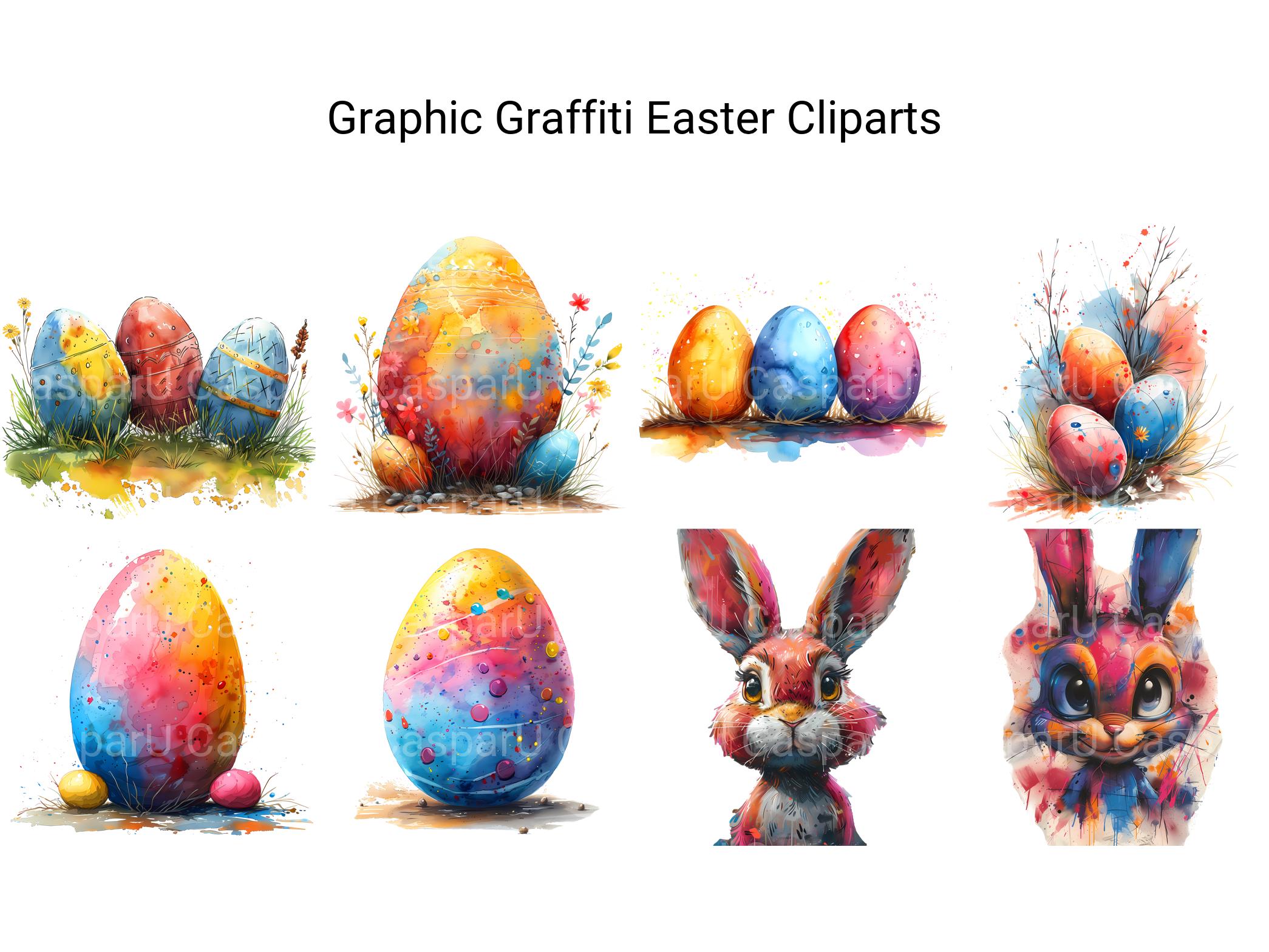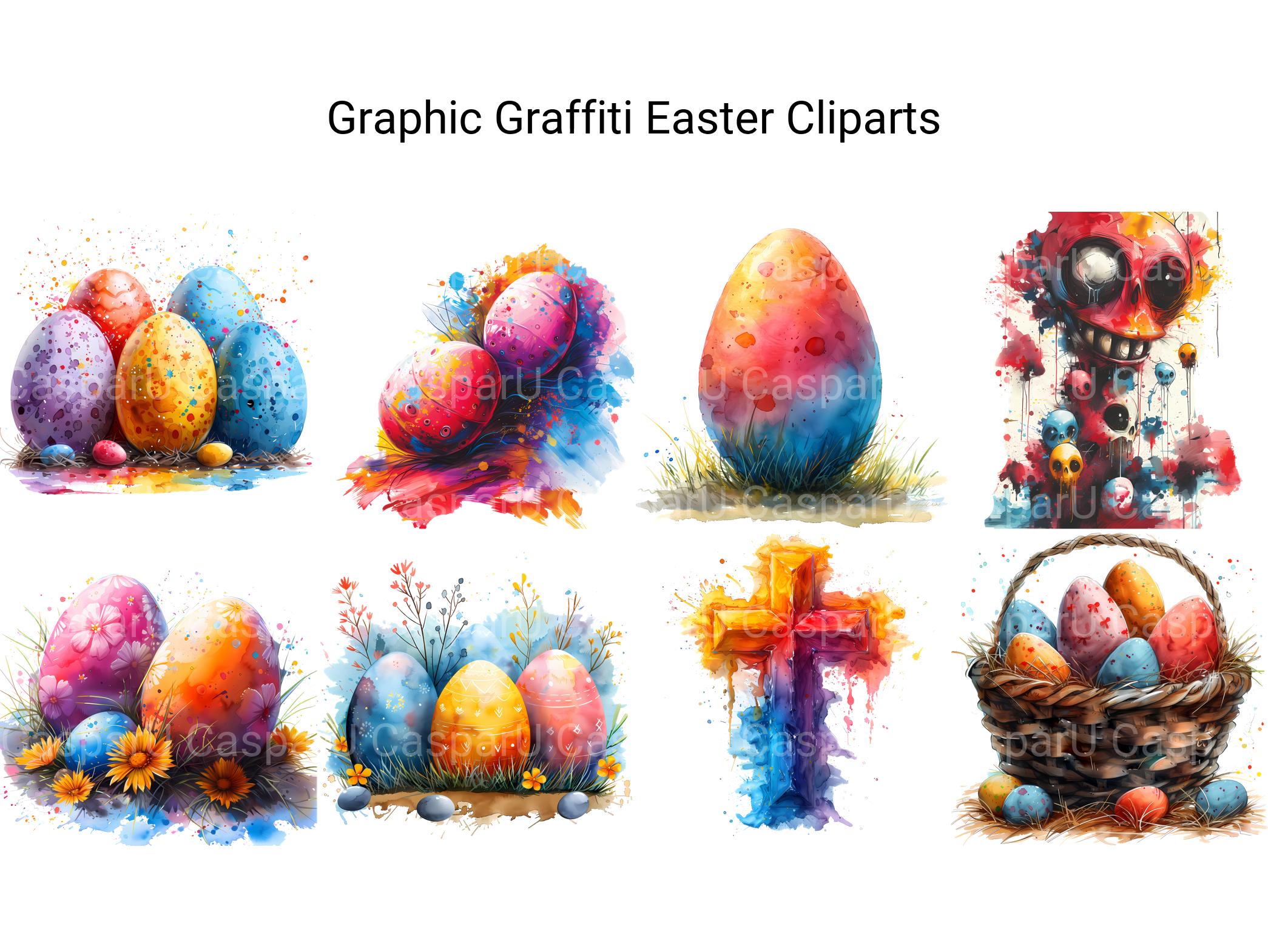 Immerse yourself in the vibrant energy of urban art with Graphic Graffiti Easter digital clip art, featuring graffiti-inspired illustrations, bold designs, and expressive motifs that celebrate the dynamic art form of graffiti. These eye-catching images bring a modern edge to Easter, perfect for adding urban flair to your projects. Let Graphic Graffiti Easter infuse your designs with urban cool and streetwise style, inviting viewers to embrace the artistic energy of graffiti-inspired Easter.