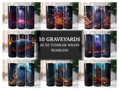 Dive into the eerie atmosphere of graveyards with our Graveyards seamless tumbler wraps. Featuring haunting graveyard scenes, these wraps exude a sense of mystery and intrigue. Whether you're a fan of the supernatural or simply appreciate atmospheric designs, let these captivating wraps add a touch of spooky ambiance to your tumbler and transport you to a realm of ghostly encounters.