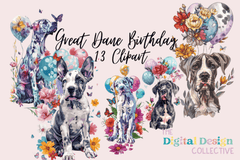 Great Dane Floral Birthday Clipart Bundle
