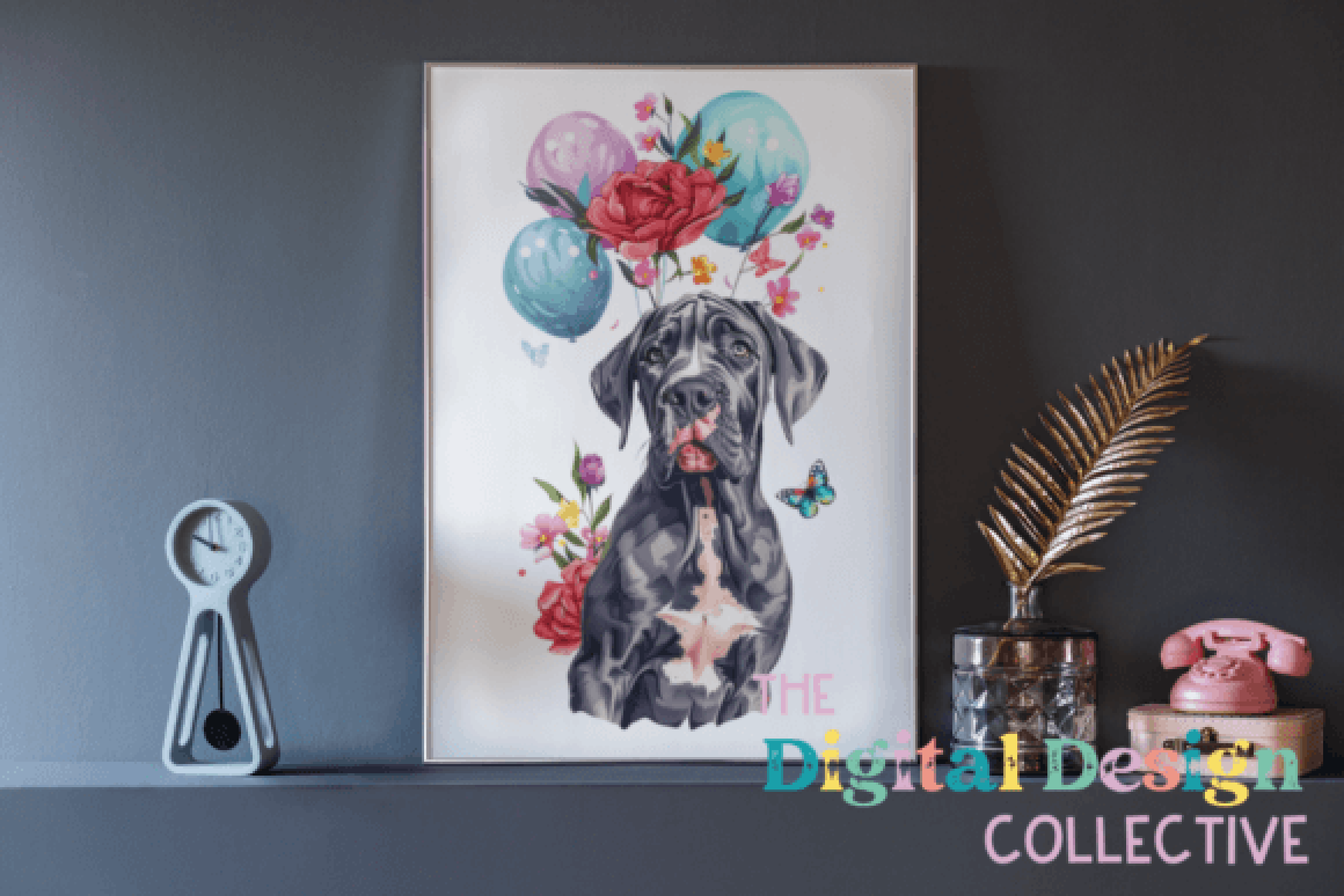 Celebrate in style with our Great Dane Floral Birthday Clipart Bundle, featuring charming Great Dane illustrations adorned with vibrant floral designs, perfect for unique birthday invitations and creative party decor.