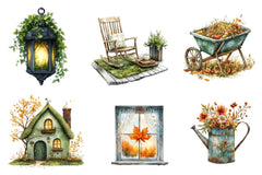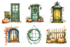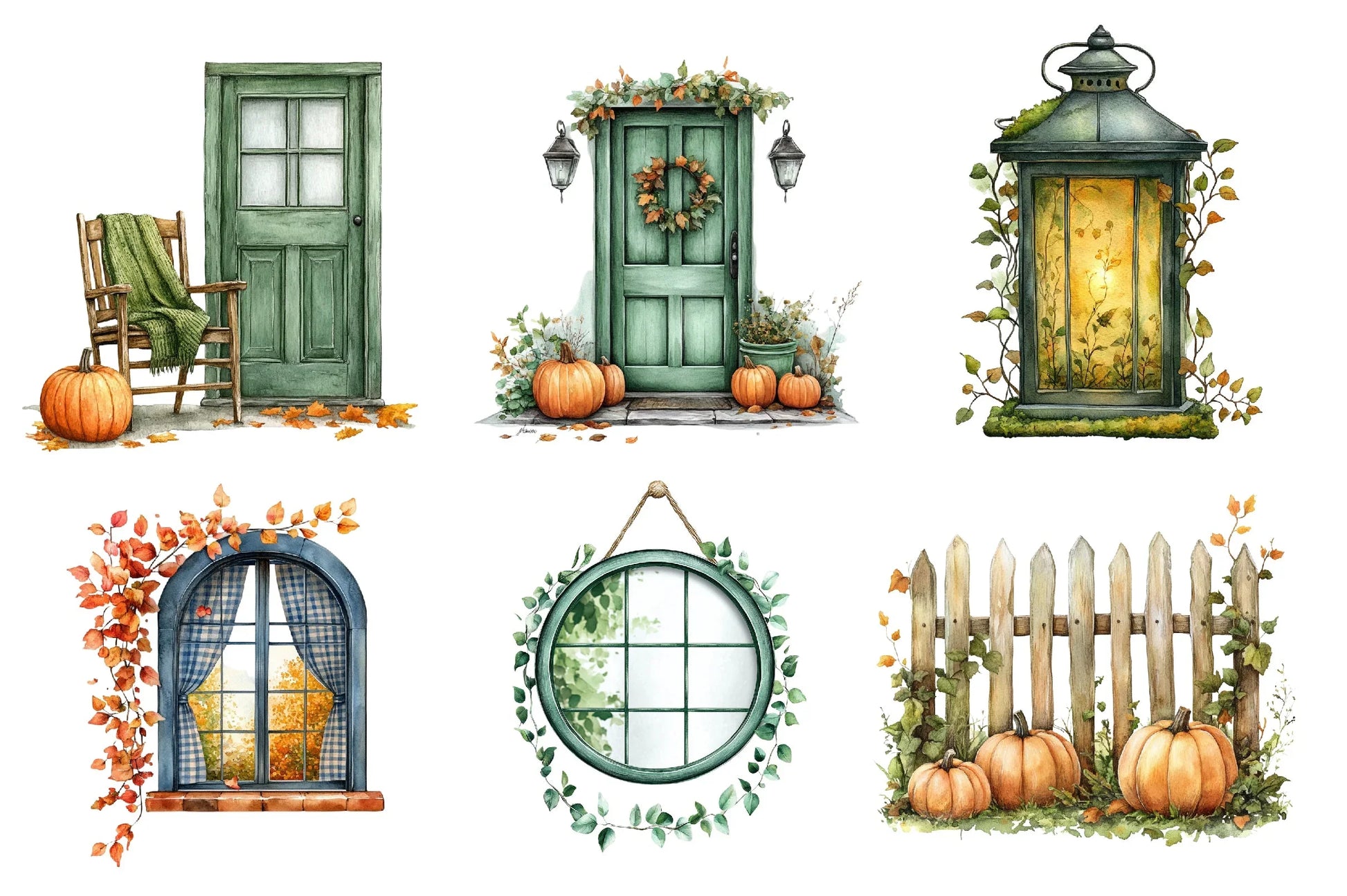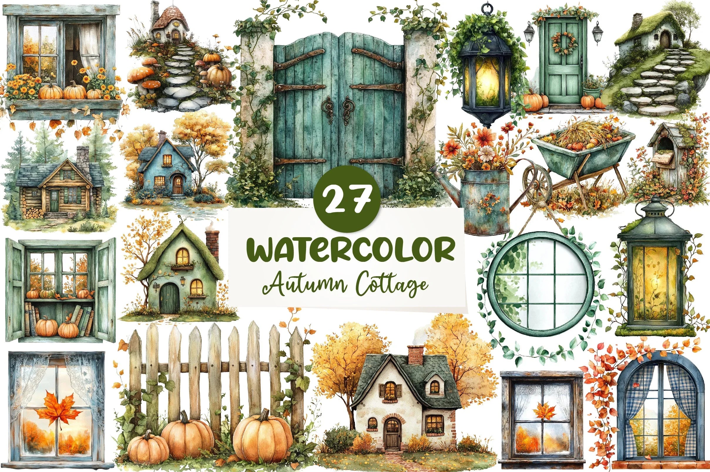 Enhance your creative projects with the Green Autumn Cottage Clipart Bundle, featuring charming cottage designs and vibrant autumn hues, perfect for seasonal crafts and digital artwork.