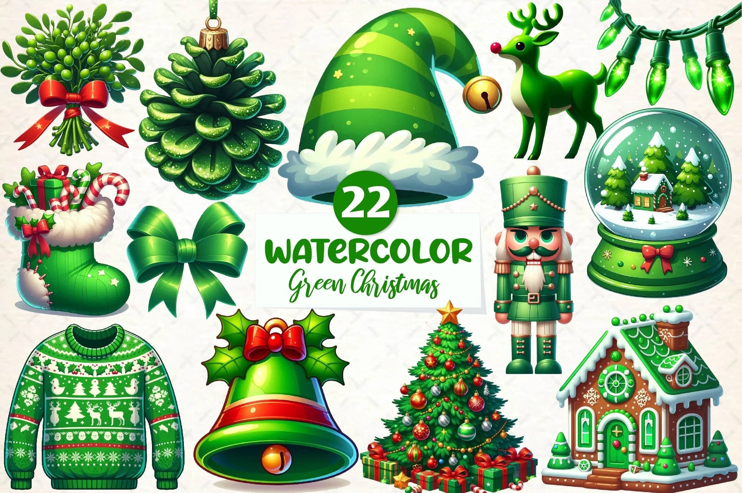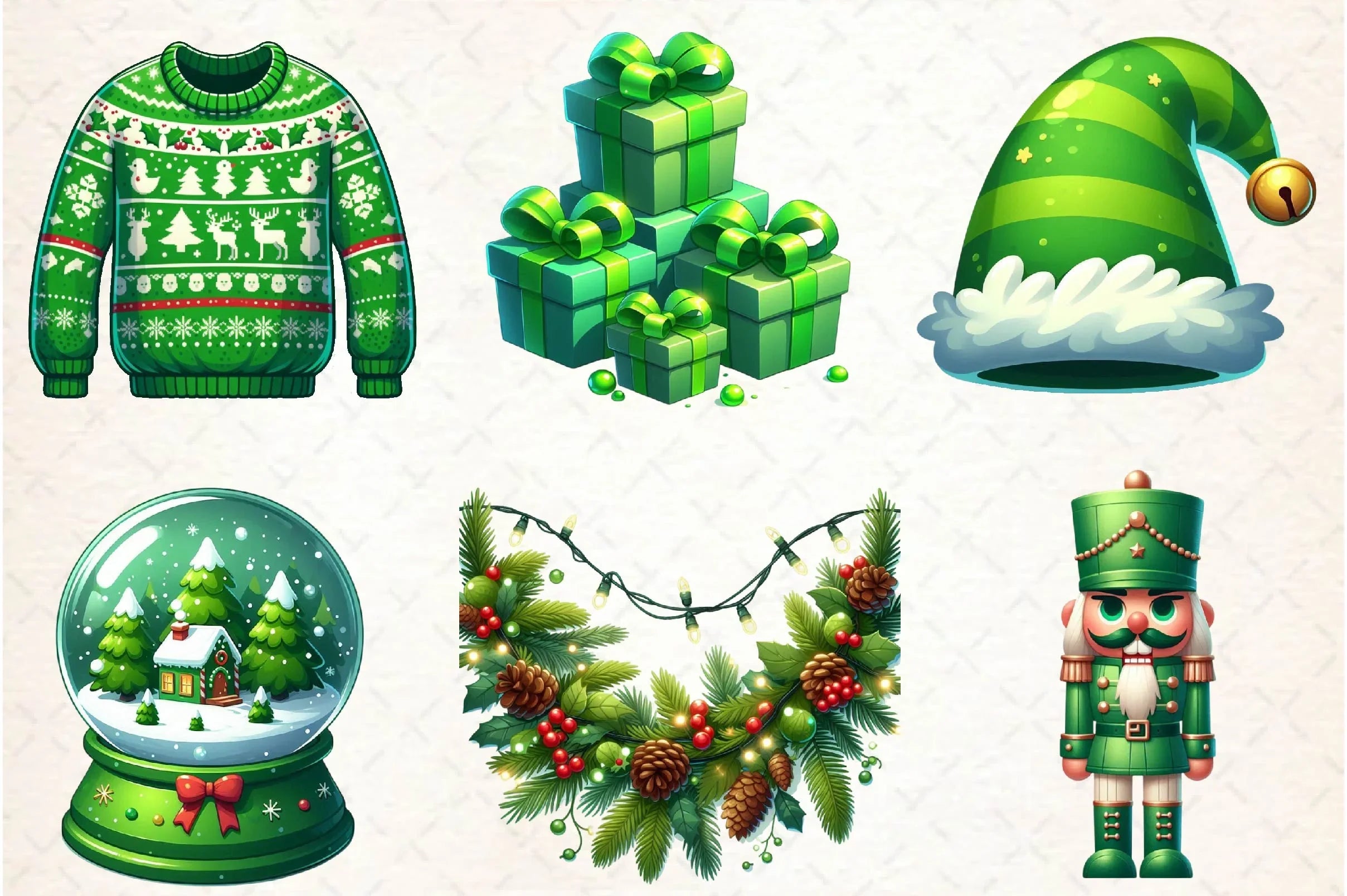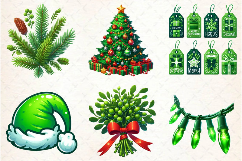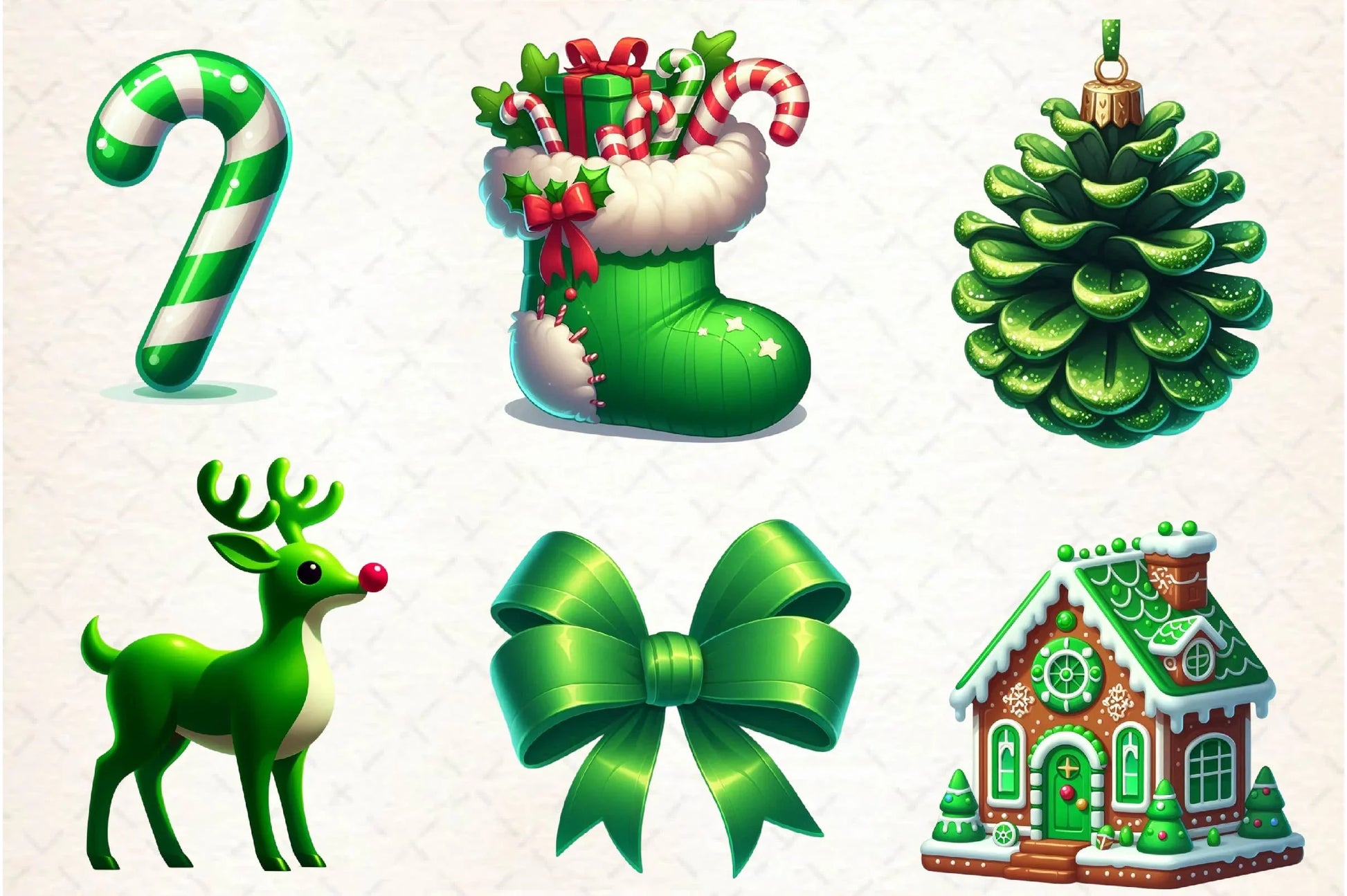 Enhance your festive projects with the Green Christmas Clipart Bundle, featuring vibrant holiday designs perfect for seasonal crafts, greeting cards, and digital decorations.