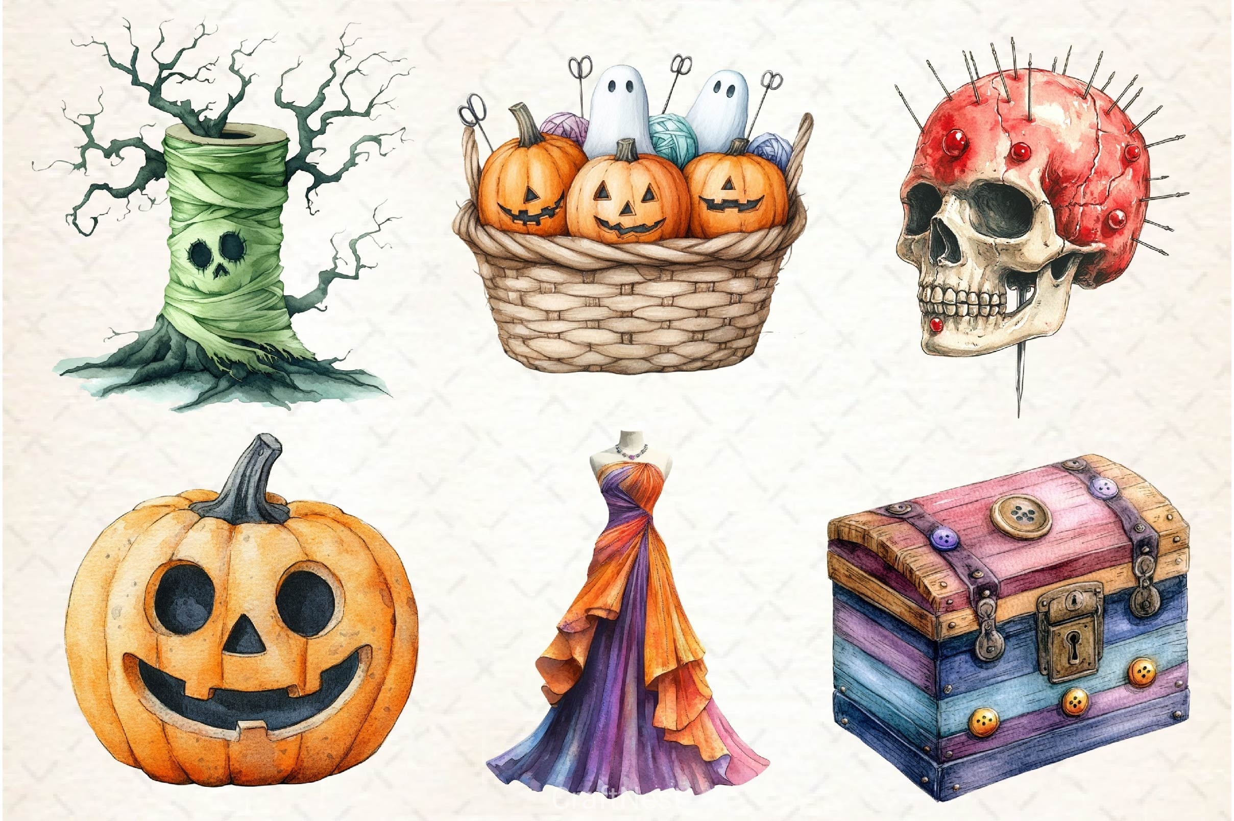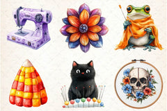Stitch with this Groovy Halloween Sewing Clipart Bundle, featuring retro craft designs, perfect for vintage Halloween crafts.