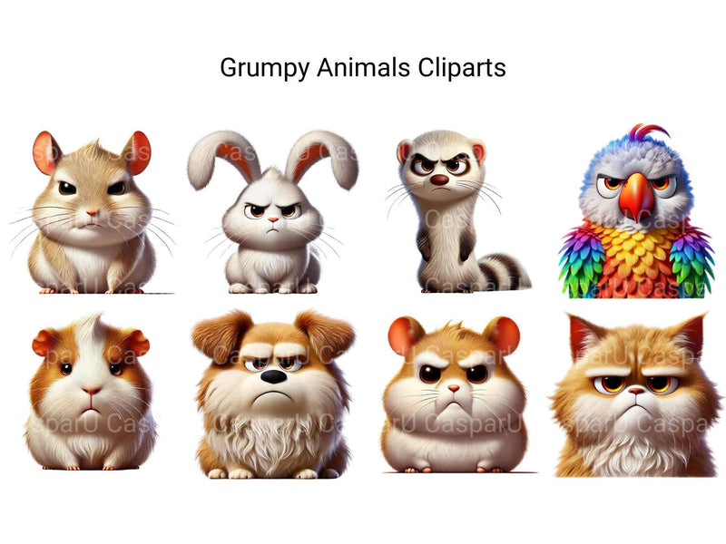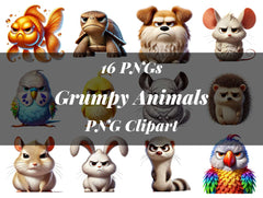 Express sass with this Grumpy Animals Clipart bundle, showcasing moody animal designs, perfect for fun and quirky projects.