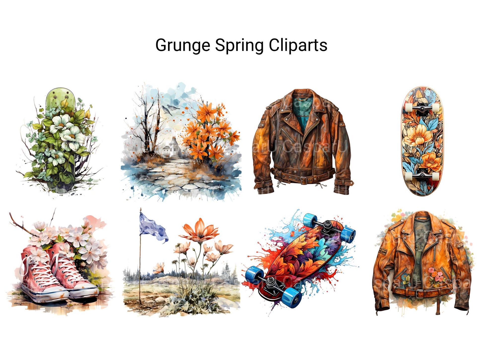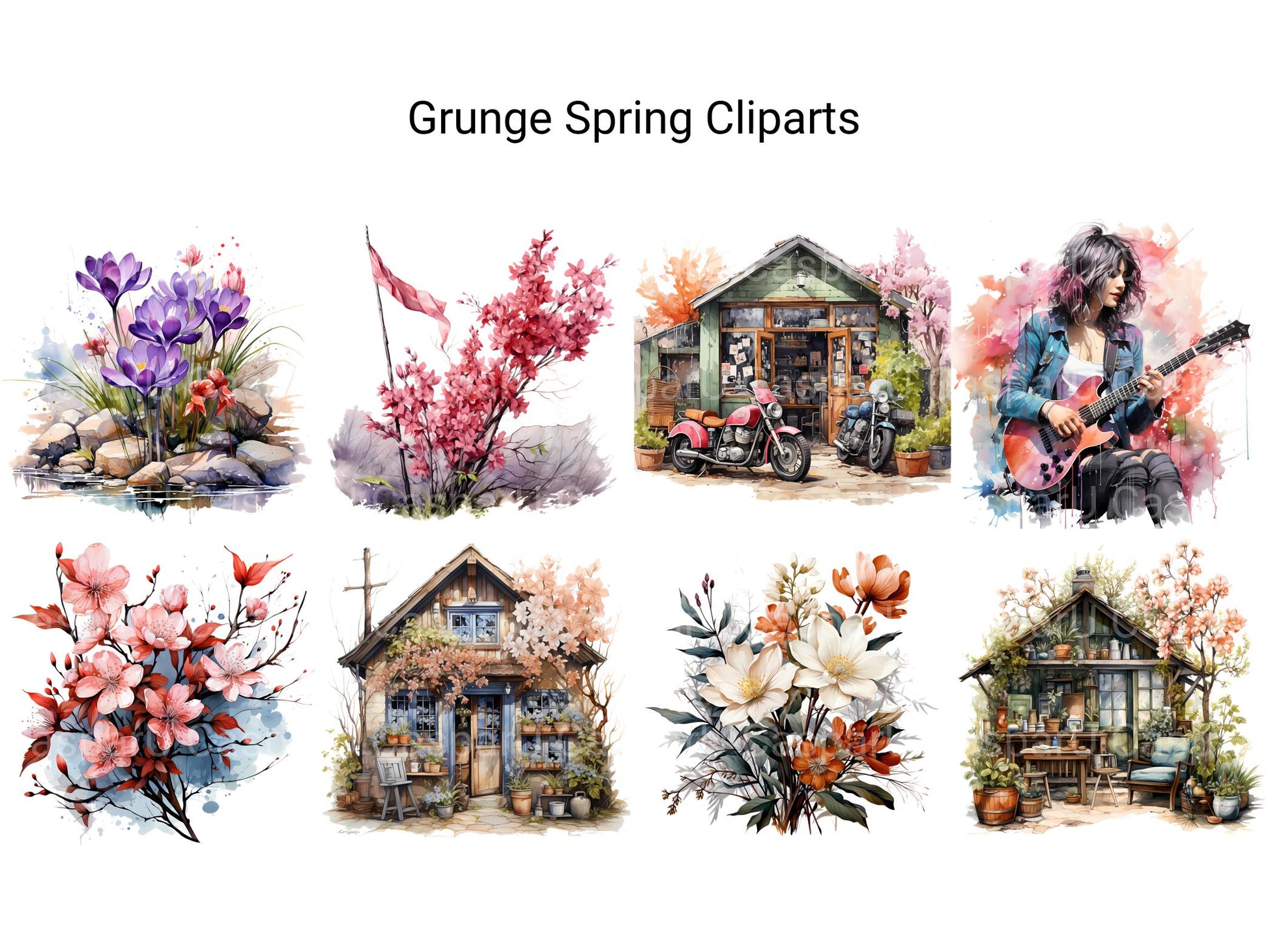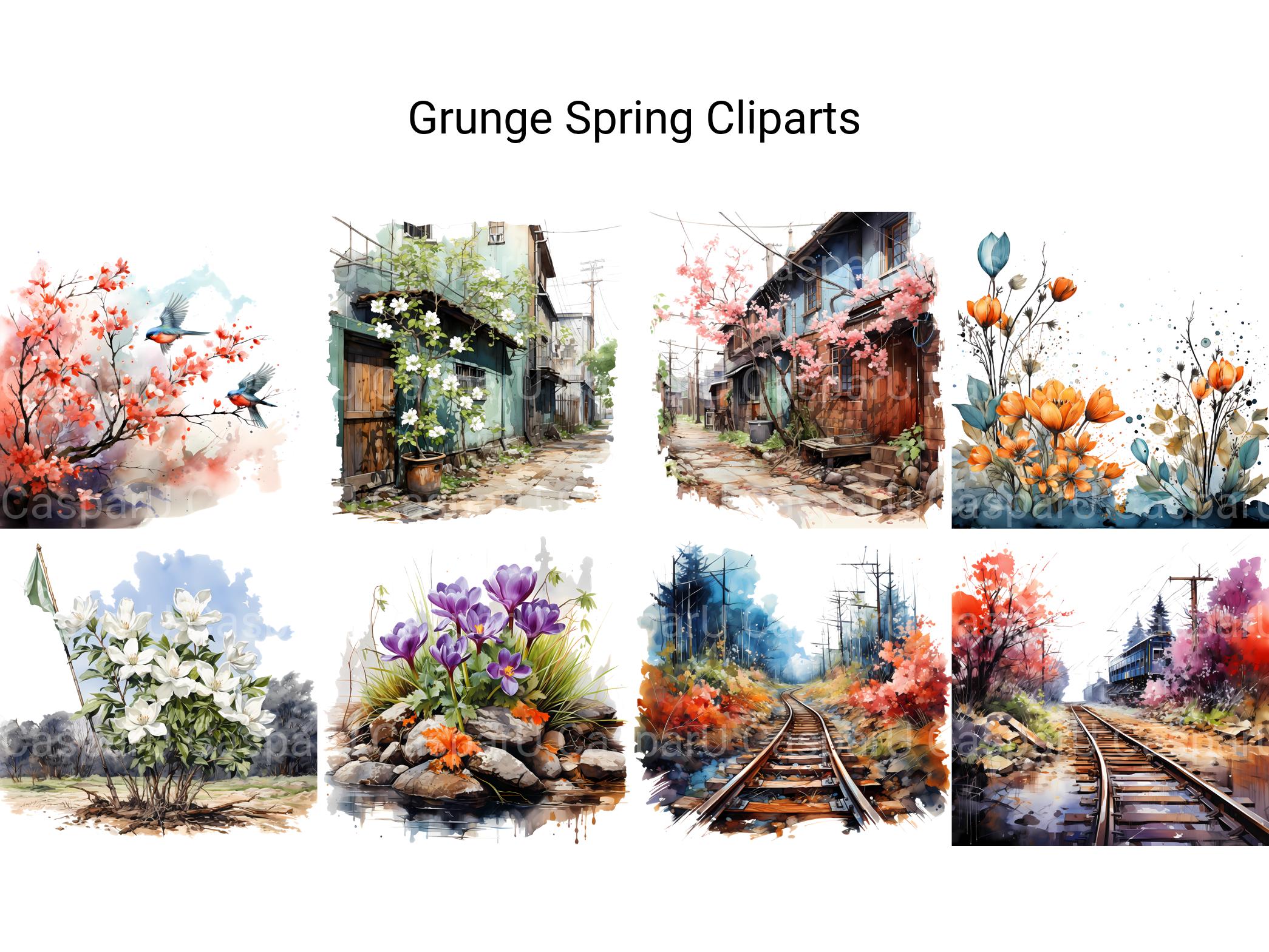 Embrace the gritty charm of Grunge Spring with digital clip art featuring distressed textures and vintage-inspired designs. From worn-out patterns to gritty typography, these edgy images capture the raw and rebellious spirit of grunge style, perfect for adding a touch of urban edge to your spring projects. Let the rough textures and gritty aesthetics of Grunge Spring infuse your designs with an authentic and lived-in feel, inviting viewers to embrace the beauty of imperfection and the allure of decay.
