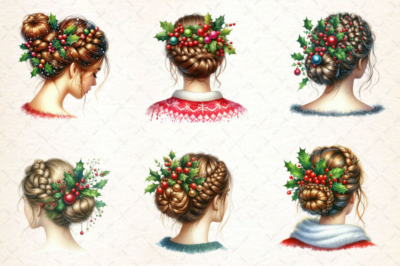 Girls with beautiful hair celebrating Christmas for holiday people projects.