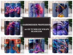 This seamless tumbler wrap captures the essence of hairdressing with detailed designs of hairbrushes, hairdryers, and salon chairs. Ideal for hairstylists and beauty enthusiasts, it brings a sense of elegance and sophistication to your drinkware. Showcase your passion for hairdressing with this stylish wrap.