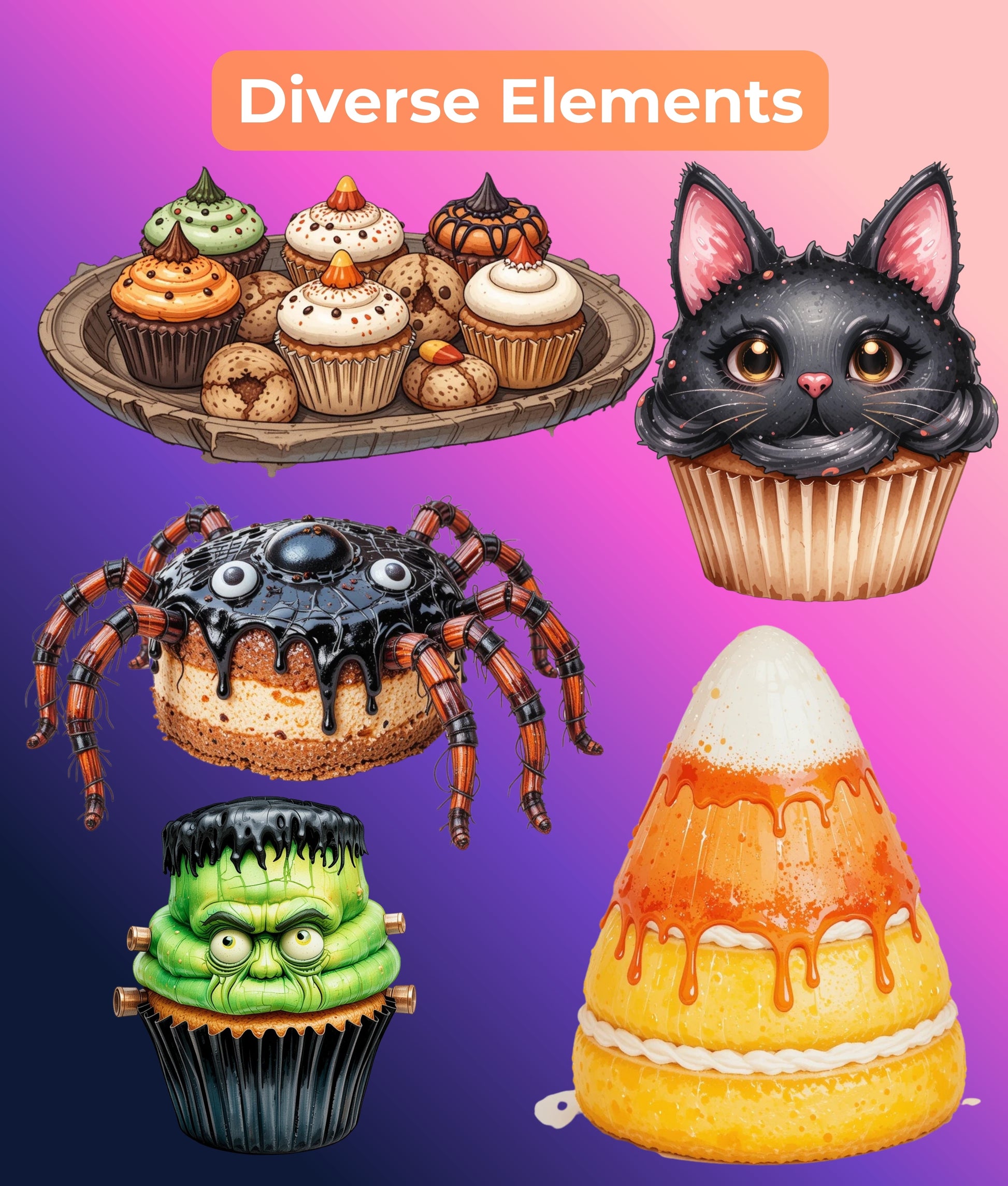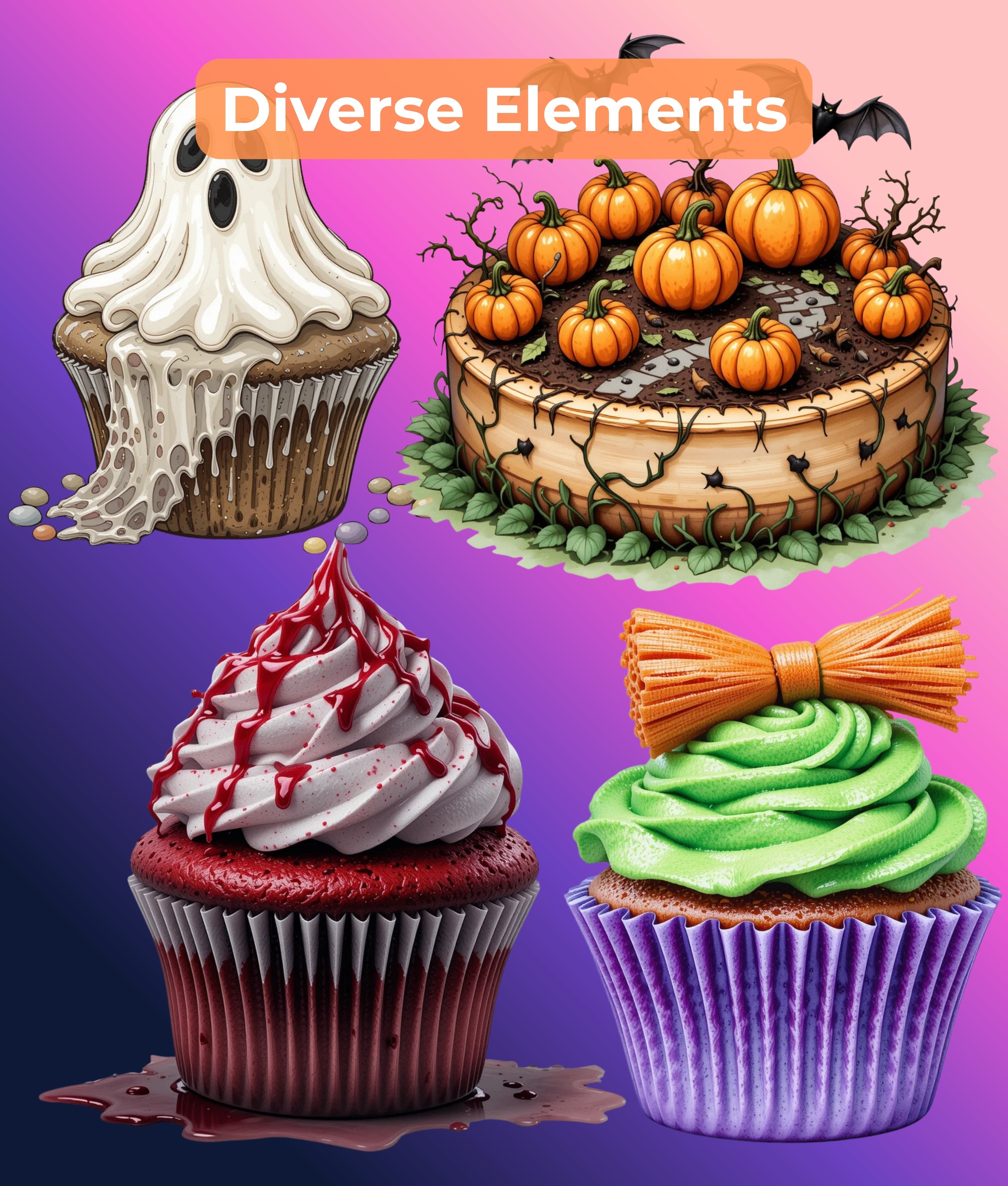 Unleash your creativity with our Halloween Cakes & Cupcakes Clipart Bundle, perfect for spooktacular party invitations and eerie decorations. Dive into a world of ghoulishly delightful designs, ideal for crafting hauntingly beautiful projects. Whether you're designing for a Halloween bash or creating eerie-themed crafts, this bundle offers a bewitching array of options. Elevate your seasonal projects with these high-quality, spine-chilling illustrations, perfect for adding a touch of Halloween magic to any creation.