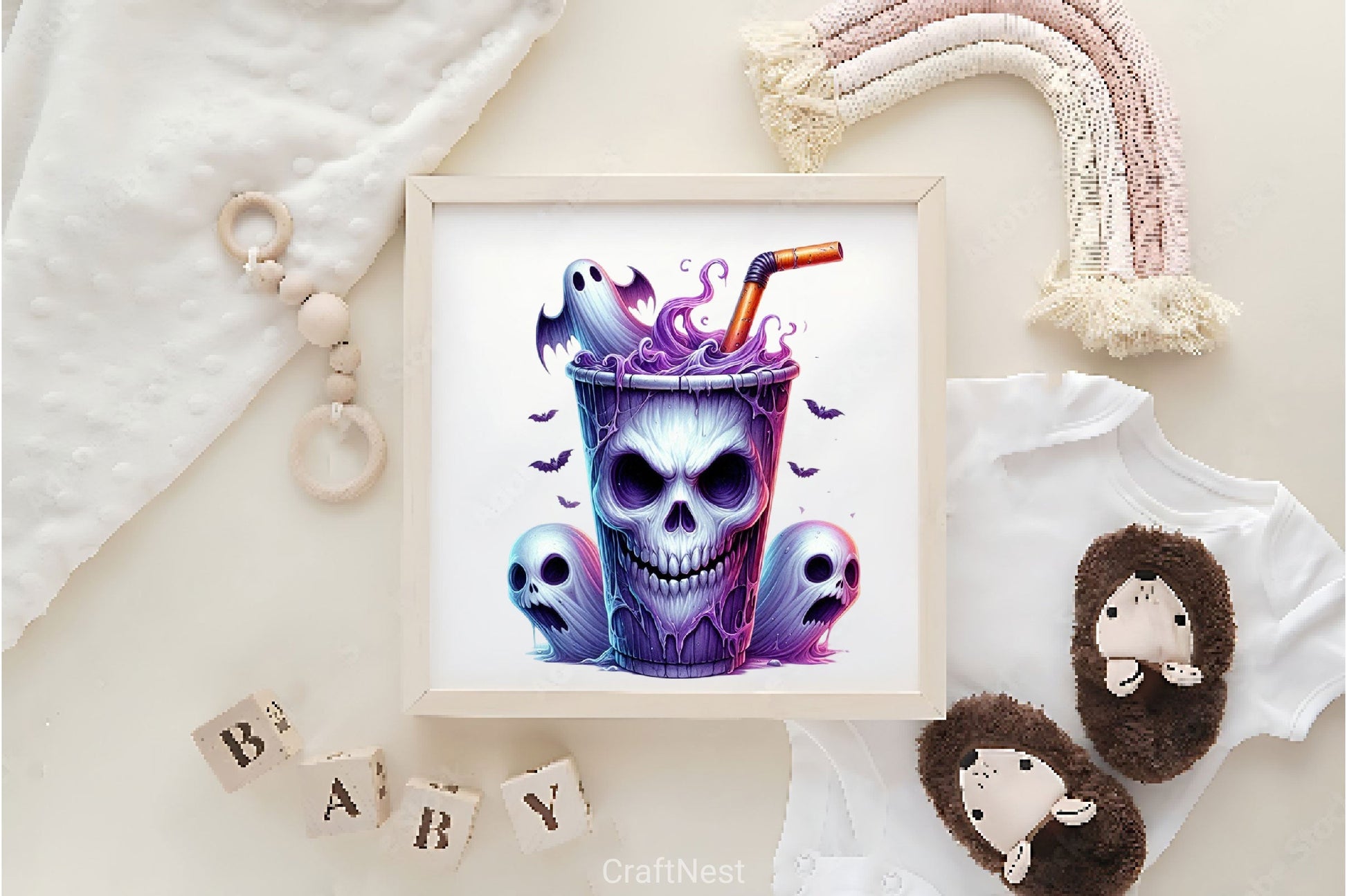 Caffeinate with this Halloween Coffee Cup Clipart Bundle, featuring spooky beverage designs, perfect for gothic coffee crafts.