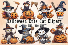 Halloween Cute Cat Clipart Bundle