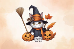 Adorable cats in Halloween themes for cute spooky pet projects.