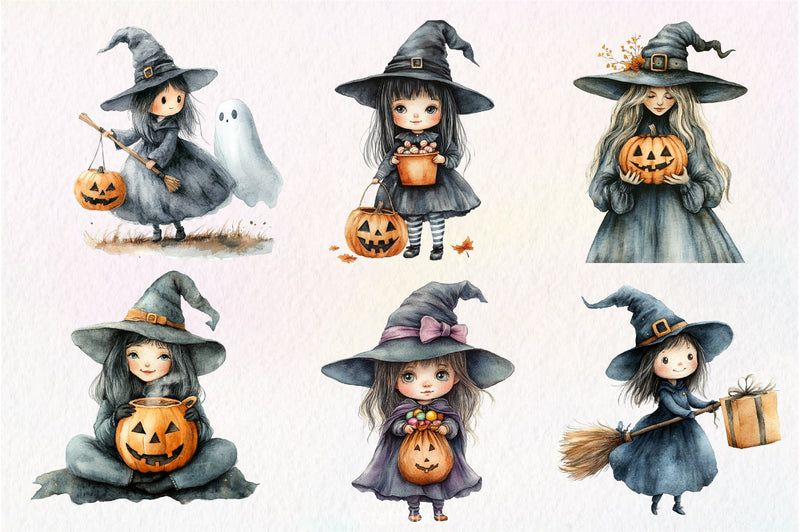 Cast with this Halloween Cute Witch Clipart Bundle, featuring adorable witch designs, perfect for sweet Halloween crafts.