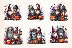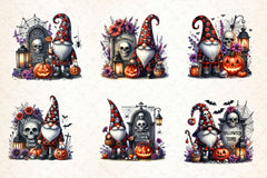 Spook with this Halloween Gnome With Grave Clipart Bundle, featuring eerie garden creature designs, perfect for gothic enchanted crafts.