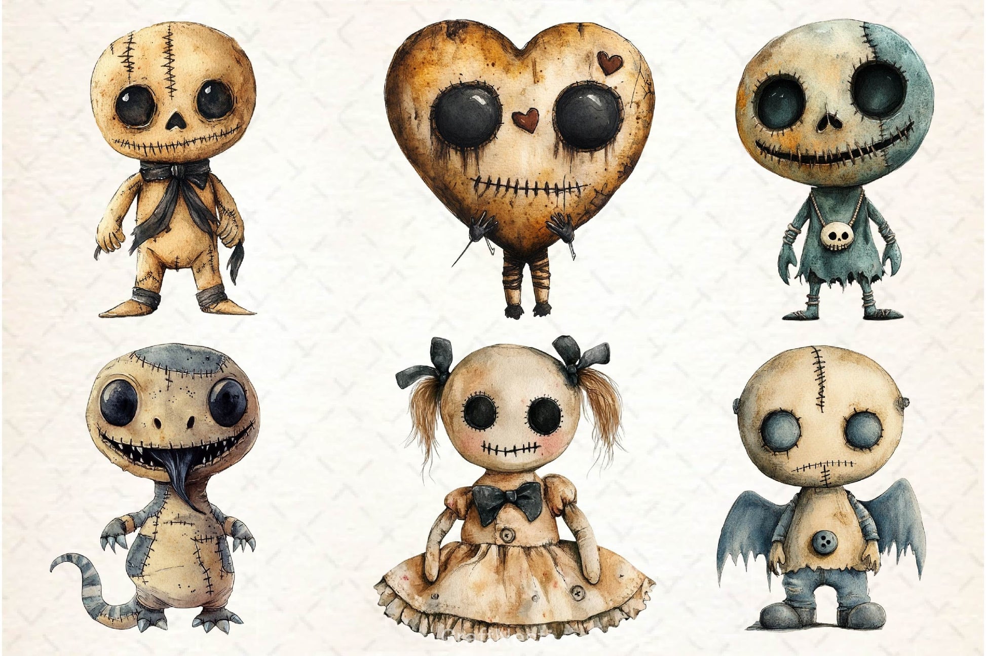 Hex with this Halloween Gothic Voodoo Doll Clipart Bundle, featuring dark voodoo designs, perfect for mystical Halloween crafts.