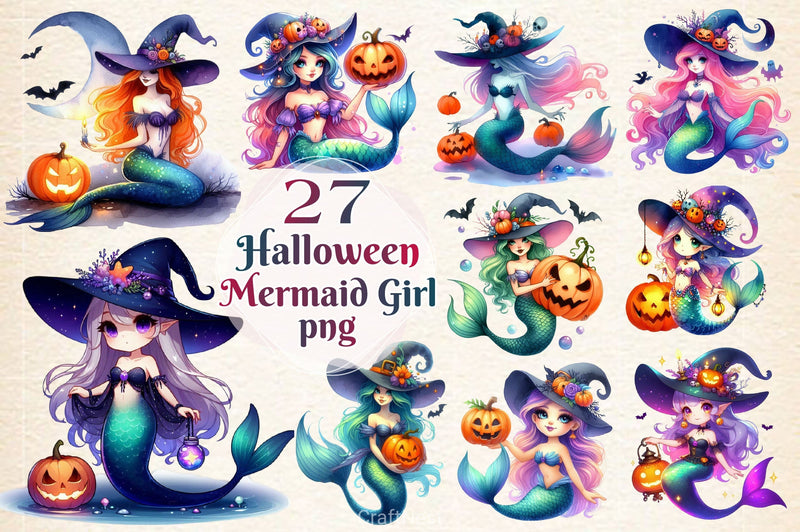 Halloween Mystical Mermaid Girl Clipart Bundle 2