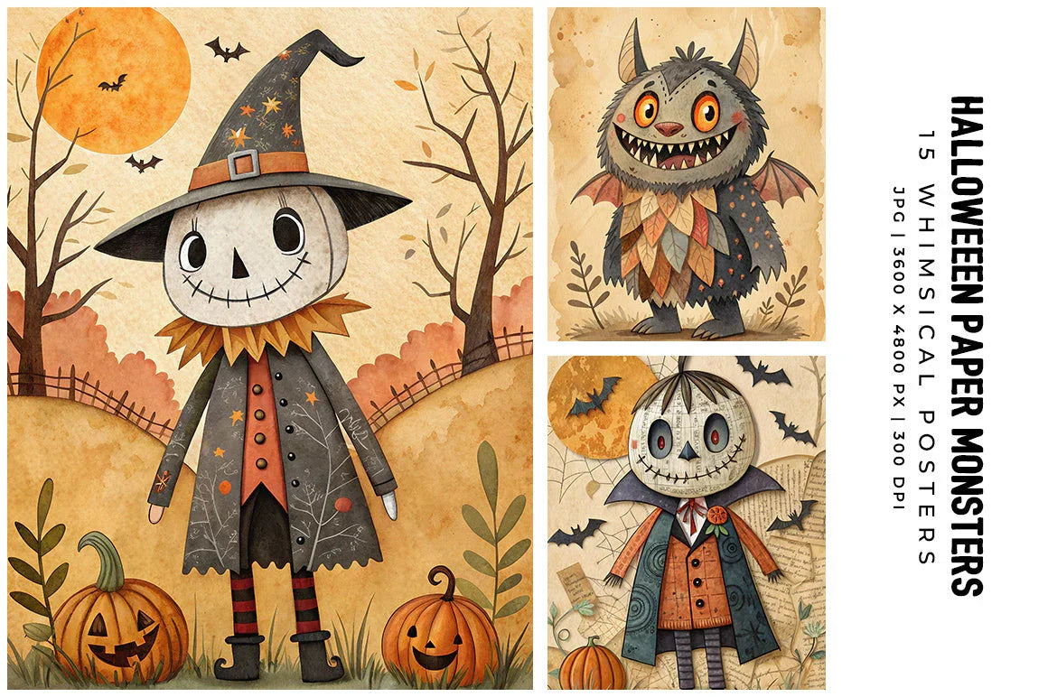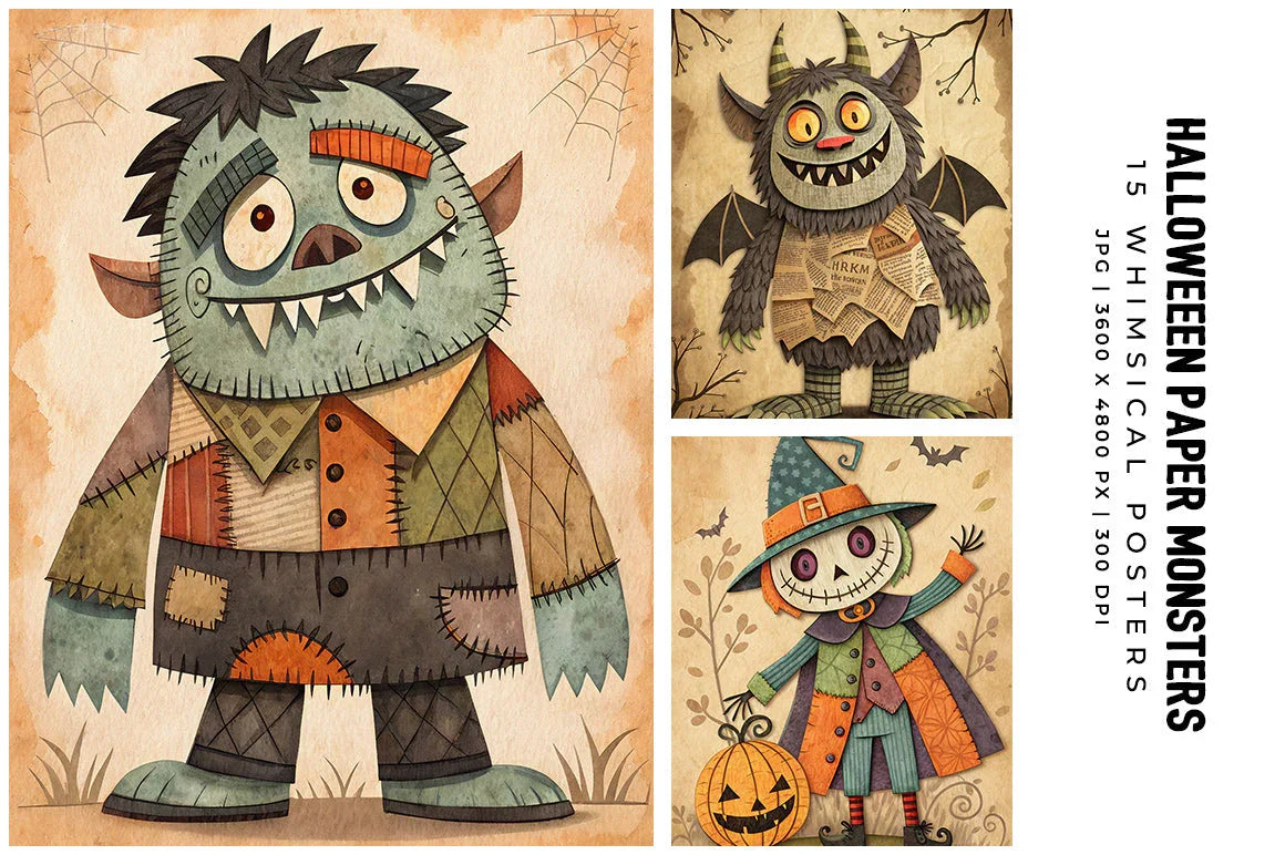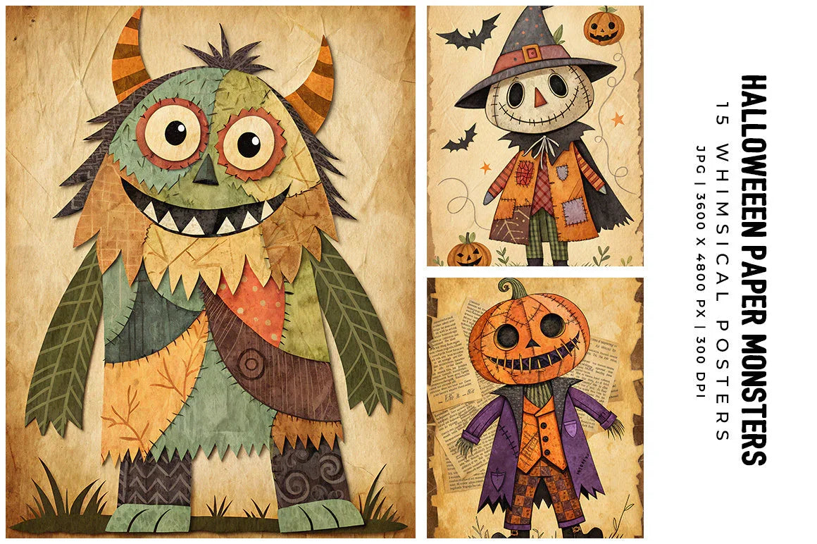 Unleash creativity with Halloween Paper Monsters, featuring spooky and fun monster designs, perfect for festive crafts and Halloween decorations.