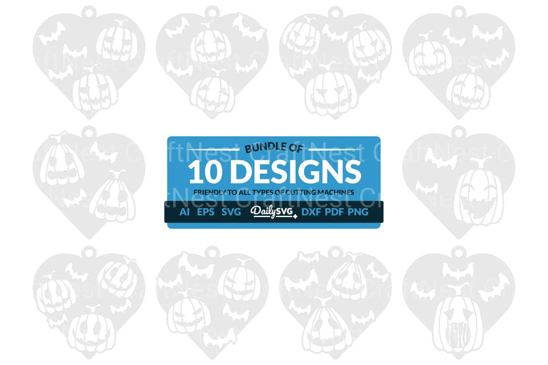 Halloween Pumpkin Heart Keychain Clipart SVG Bundle