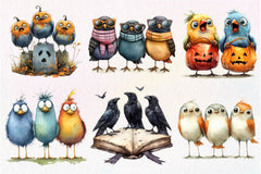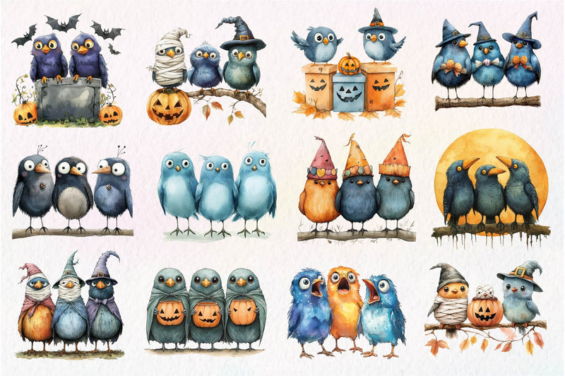 Fly with this Halloween Quirky Birds Clipart Bundle, featuring spooky bird designs, ideal for eerie avian crafts.