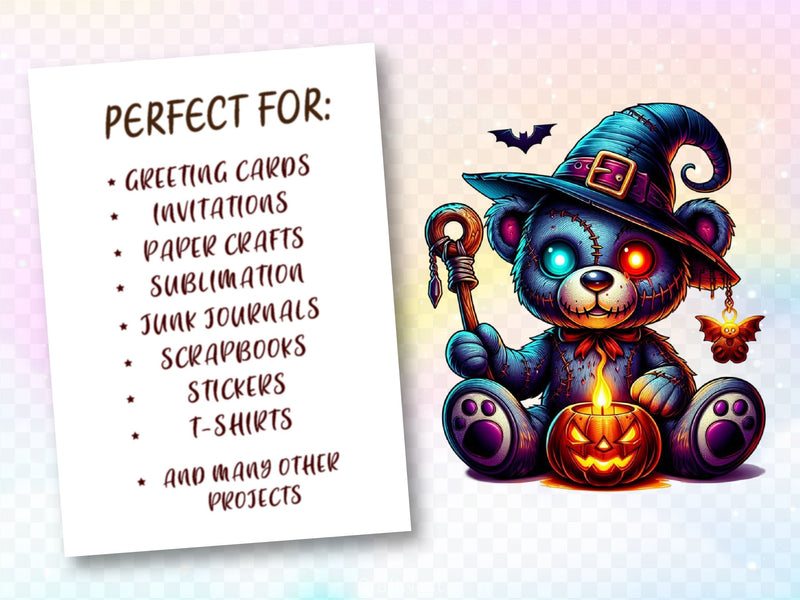 Frighten with this Halloween Scary Teddy Bear Clipart Bundle, featuring spooky toy designs, perfect for eerie Halloween crafts.