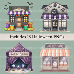 Spook with this Halloween Shops 15 Clipart Bundle, featuring creepy shop designs, perfect for Halloween celebration crafts.