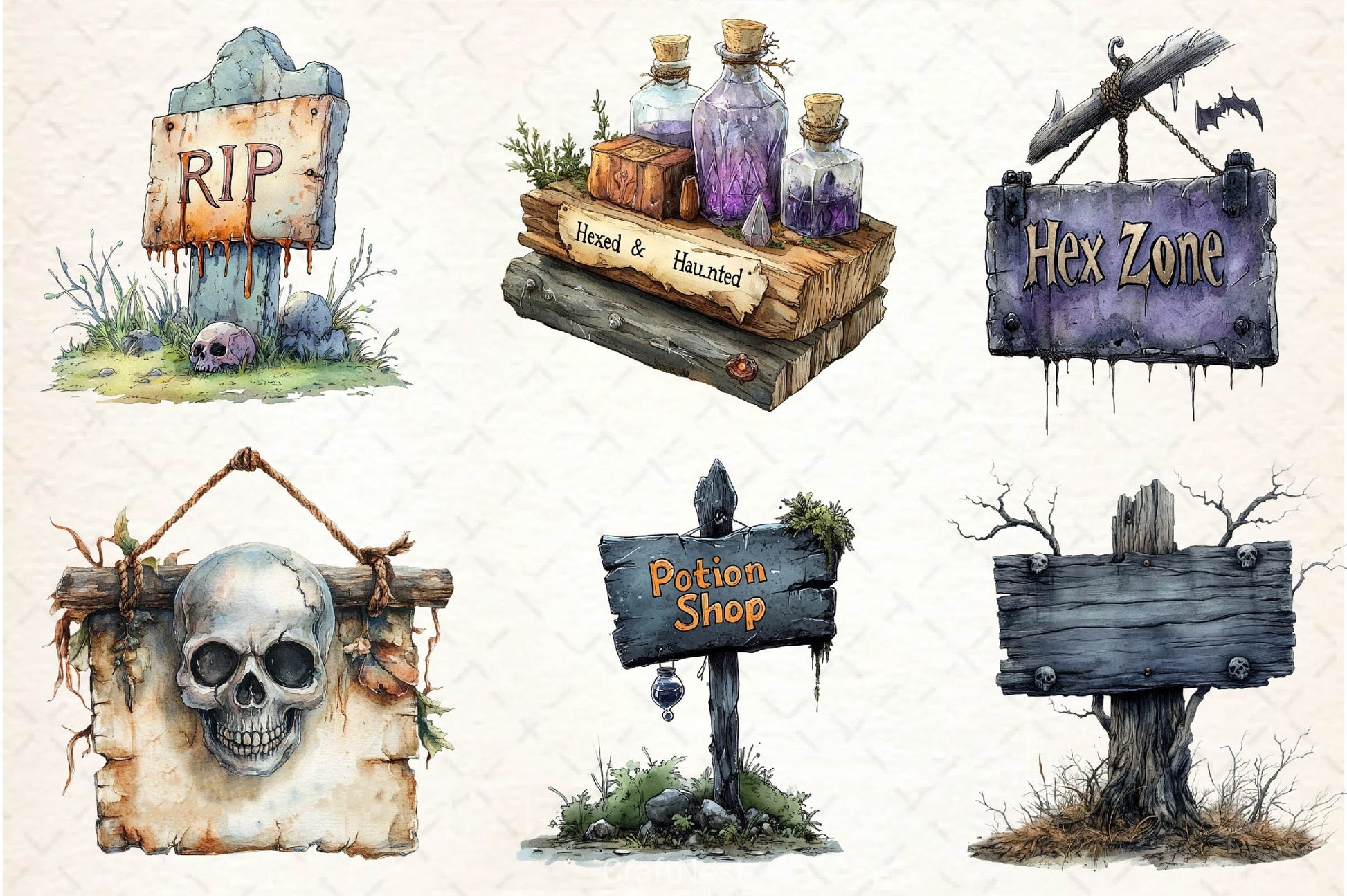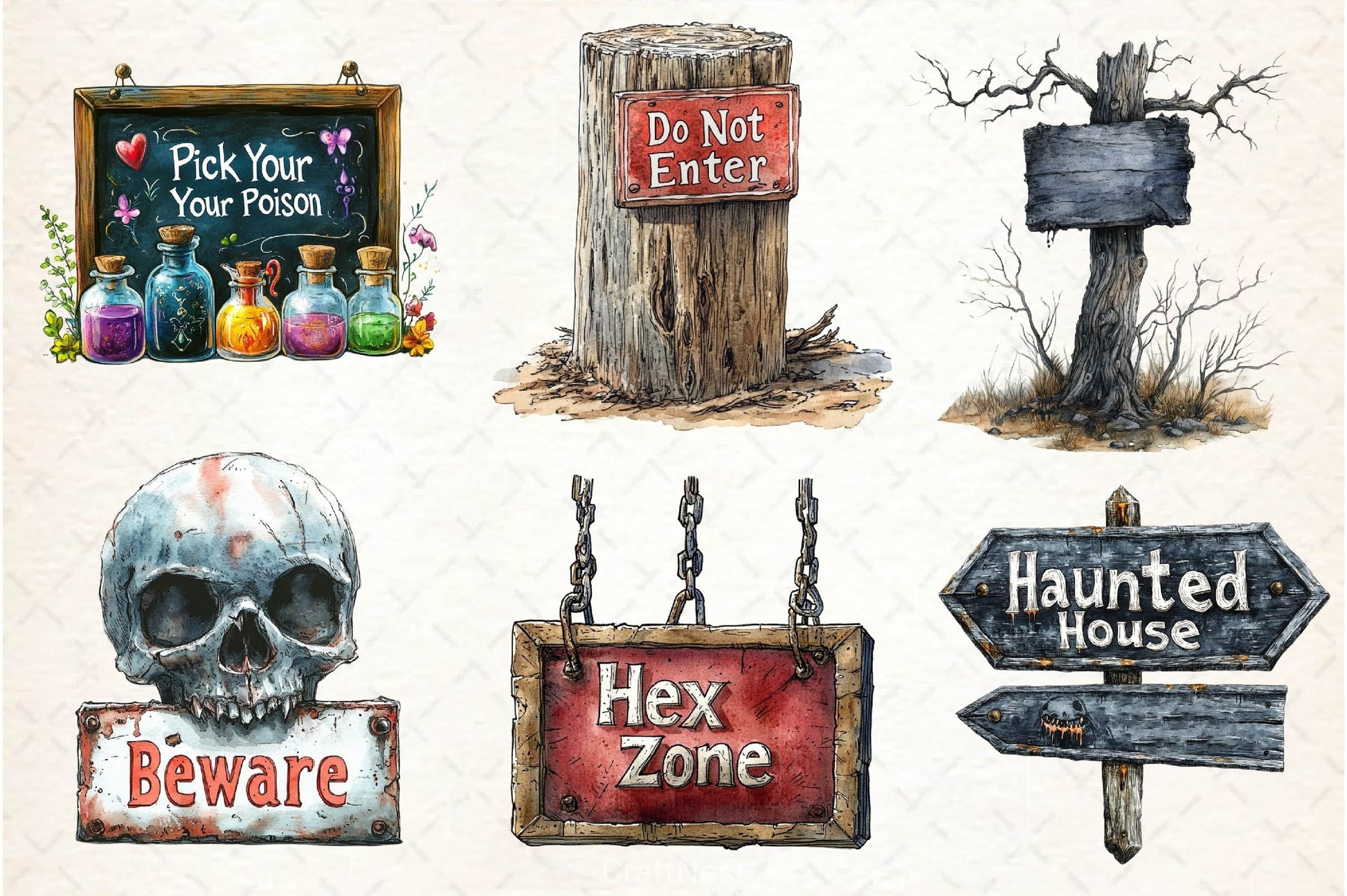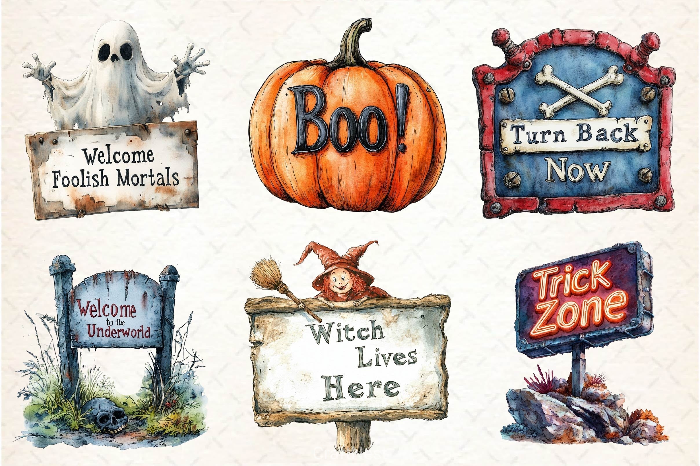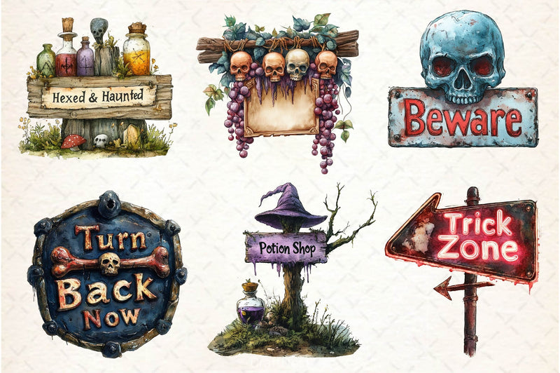 Halloween Spooky Signs Clipart Bundle