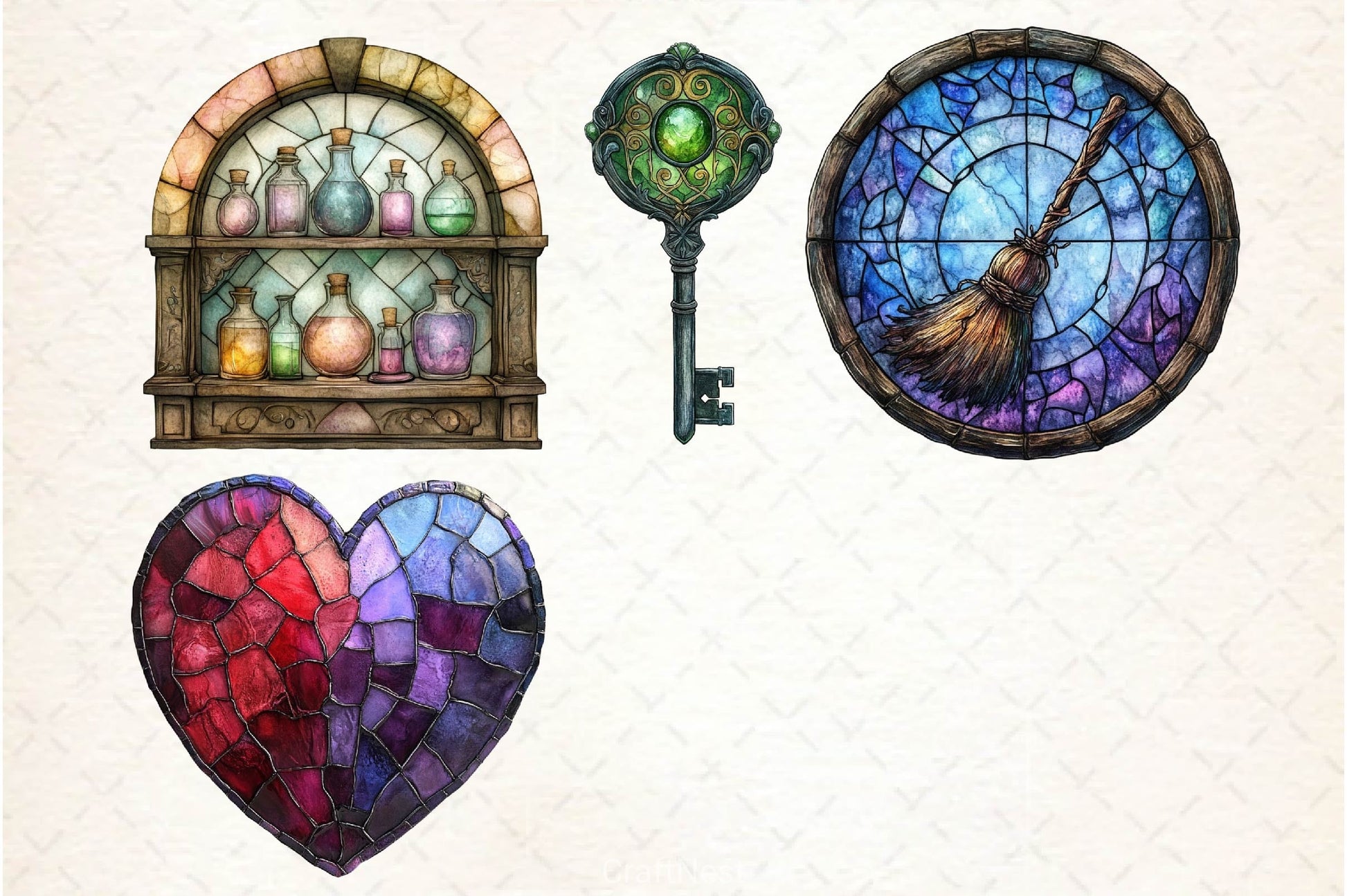 Shine with this Halloween Stained Glass Clipart Bundle, featuring spooky window designs, perfect for gothic glass crafts.