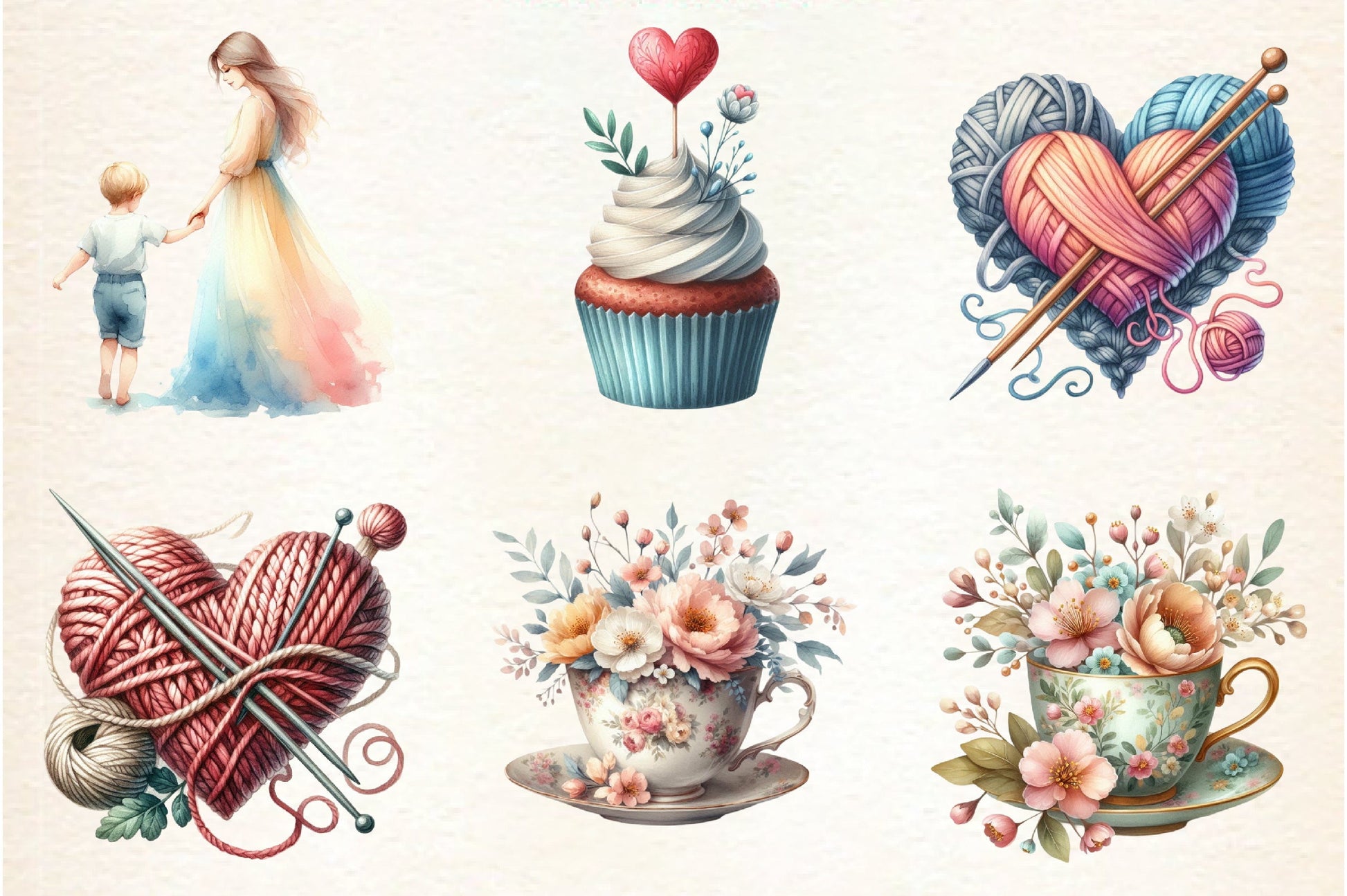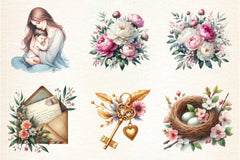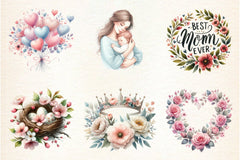 Delight in the charm of our Mother's Day Clipart Bundle, offering unique hand-drawn illustrations ideal for creating memorable cards and keepsakes.