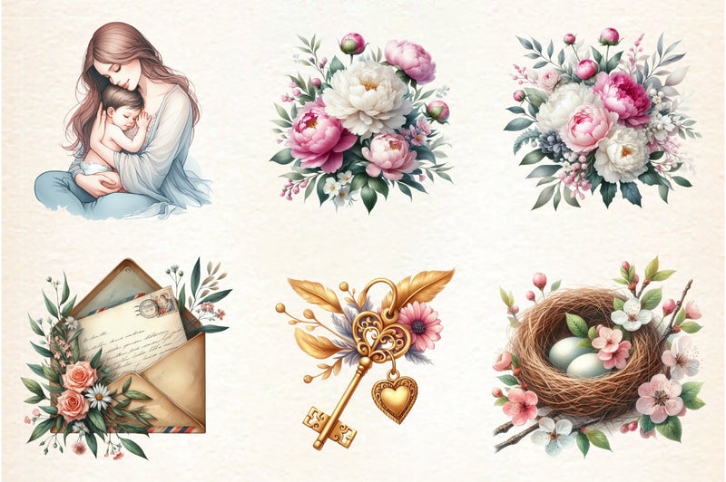 Celebrate Mother's Day with our Hand-Drawn Illustrations Clipart Bundle, featuring exquisite designs perfect for heartfelt crafts and personalized gifts.