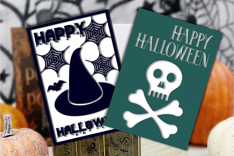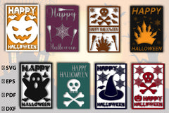 Frighten with this Happy Halloween Card SVG Bundle, featuring scary card designs, ideal for spooky crafts.