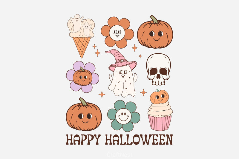 Celebrate with this Happy Halloween Clipart Bundle, featuring cheerful spooky designs, perfect for festive Halloween crafts.