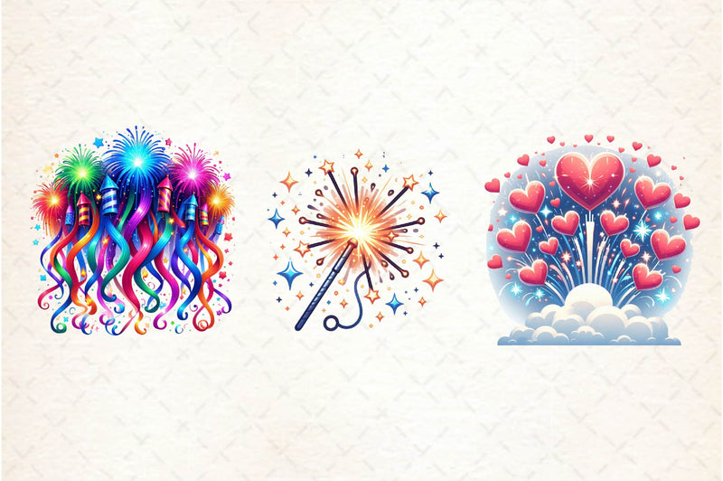 Explode with this Happy New Year Fireworks Clipart Bundle, featuring celebration firework designs, ideal for festive New Year crafts.