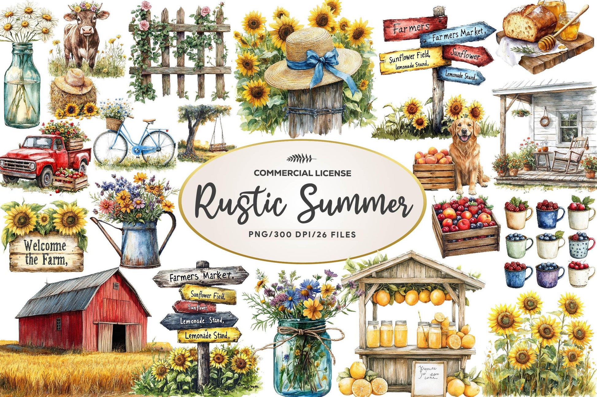 Enhance your creative projects with the Happy Rustic Summer Clipart Bundle, featuring charming rustic designs perfect for seasonal crafts, invitations, and digital artwork. Capture the essence of summer with this versatile collection.