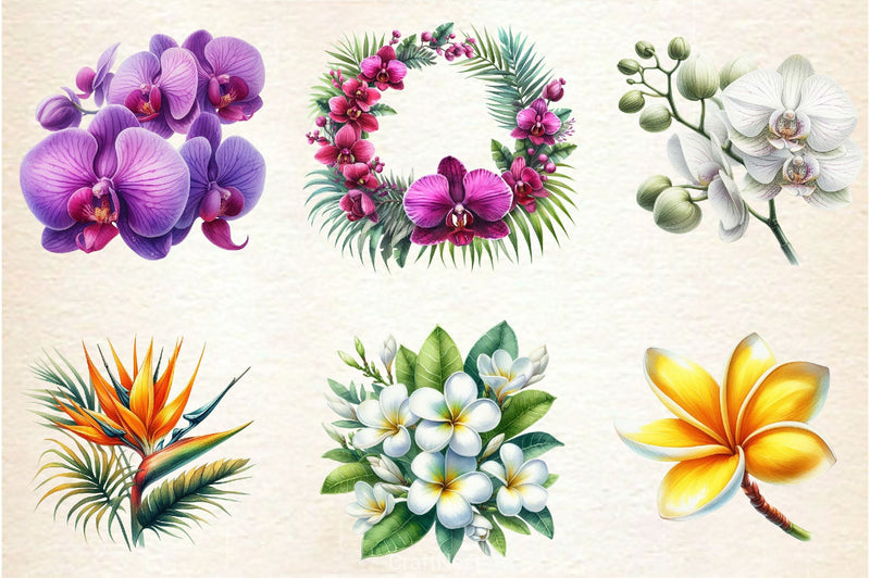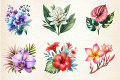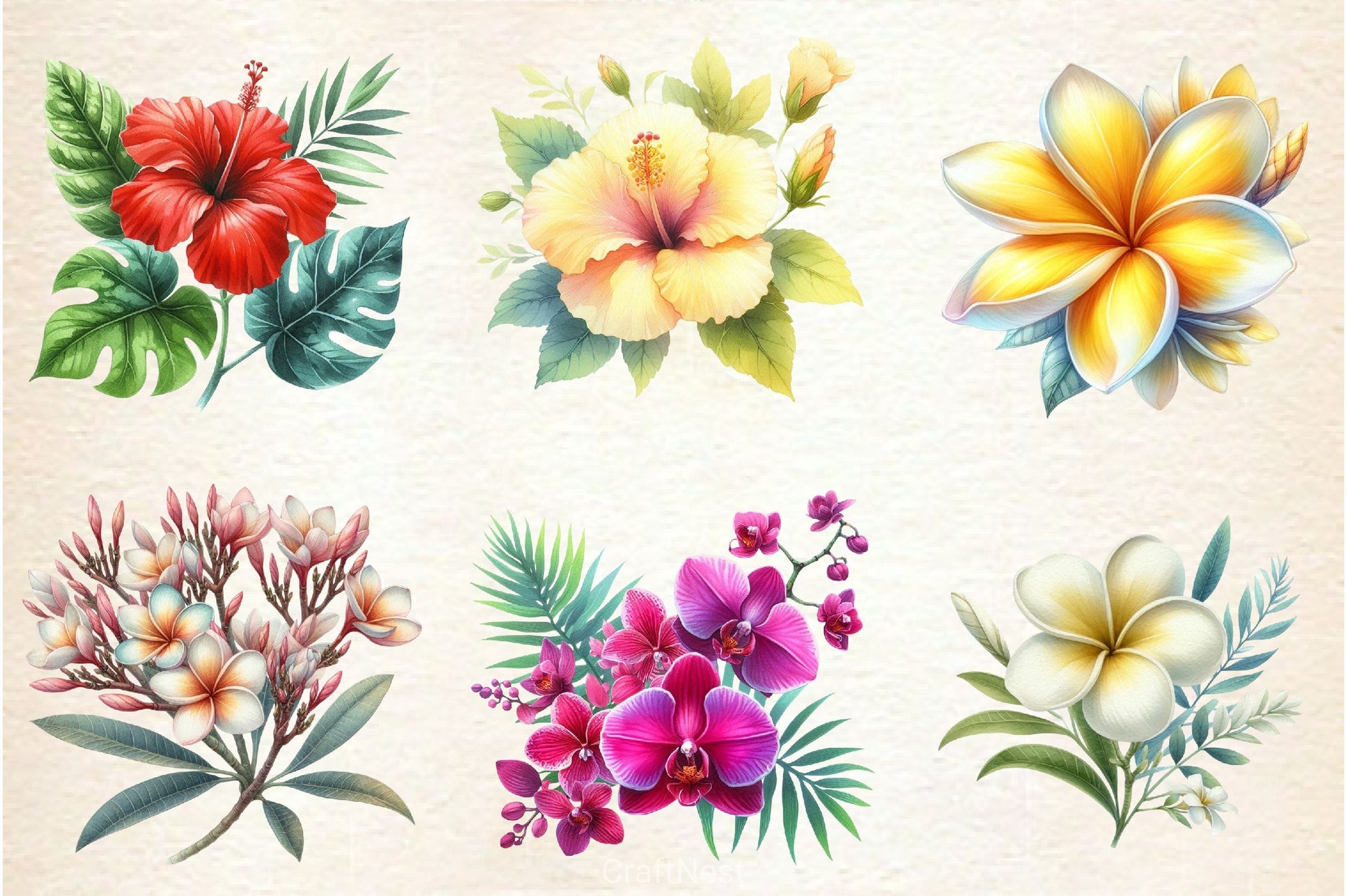 Aloha with this Hawaiian Flowers Clipart Bundle, featuring tropical island bloom designs, perfect for paradise garden crafts.