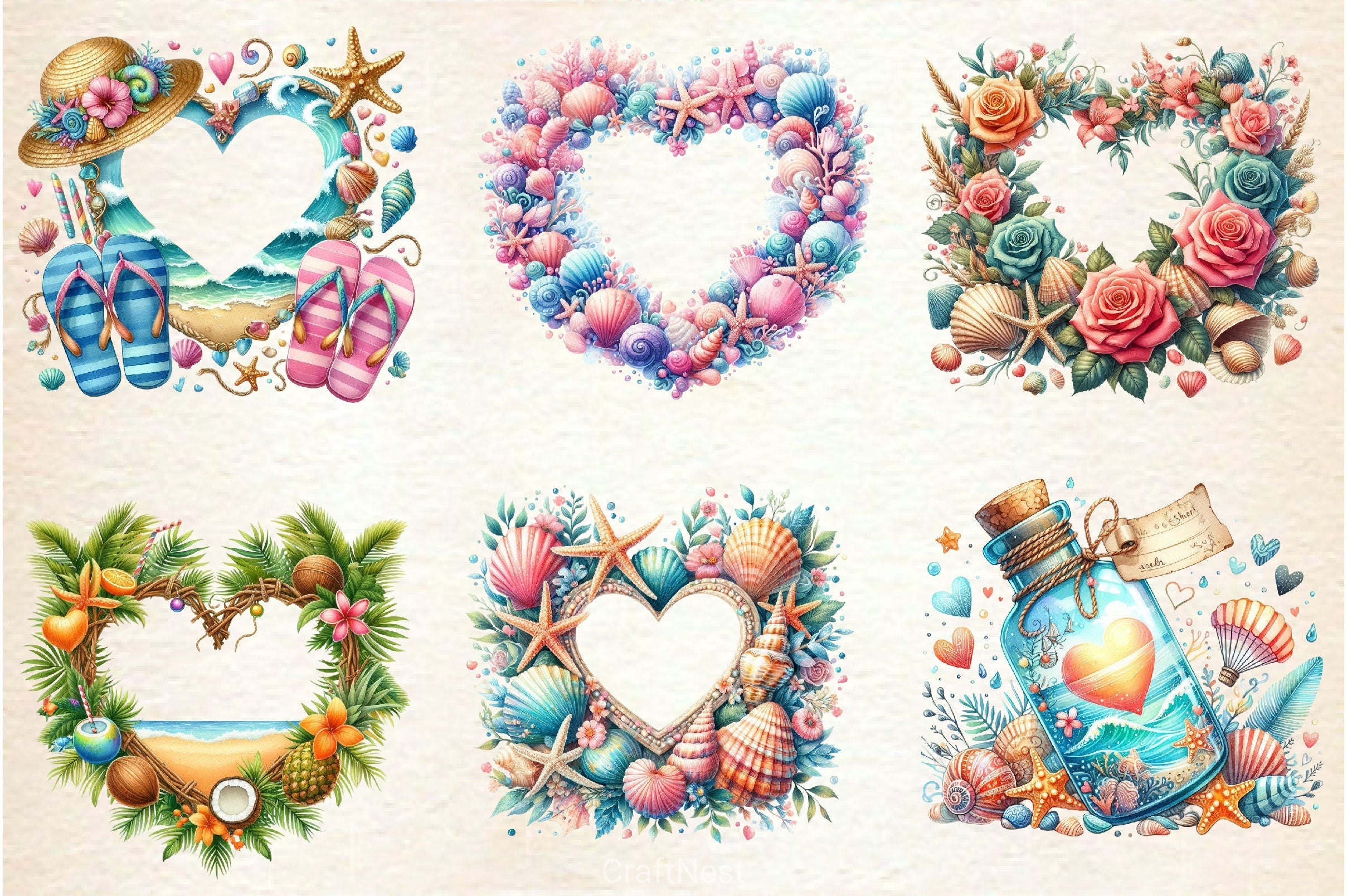 Love with this Heart Beach Frame Clipart Bundle, featuring romantic coastal designs, perfect for beach valentine crafts.