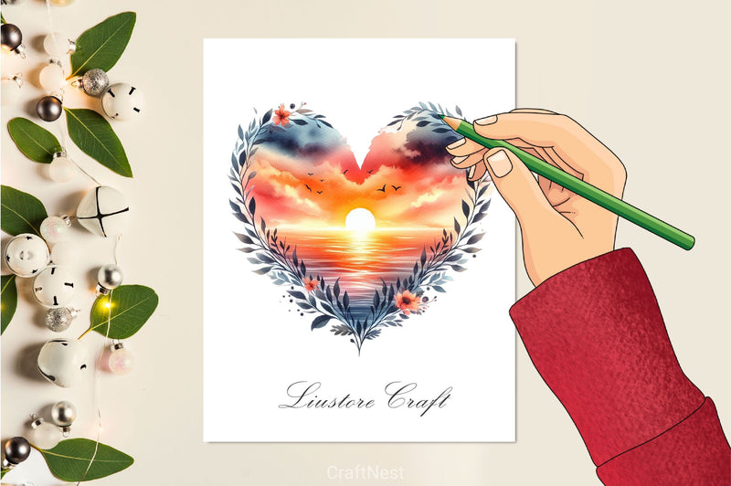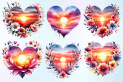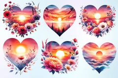 Heart Beach Sunset Clipart Bundle