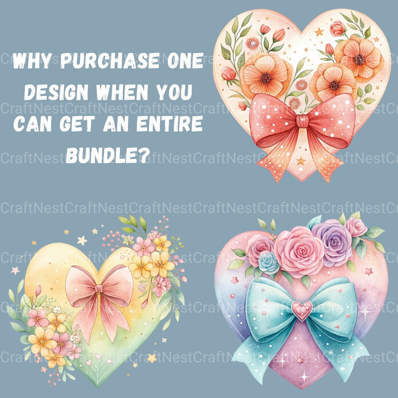 Love with this Heart Coquette Bow 15 Clipart Bundle, featuring heart bow designs, perfect for valentine fashion crafts.