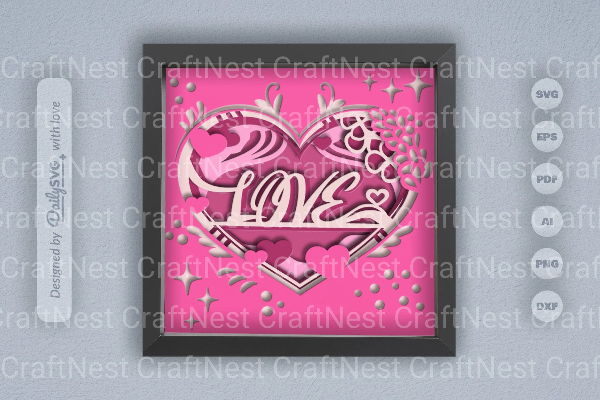 Heart Valentine Papercut Shadow Box SVG Bundle
