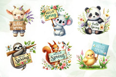 Greet with this Hello Spring Animal Clipart Bundle, featuring spring animal greetings, perfect for seasonal pet crafts.