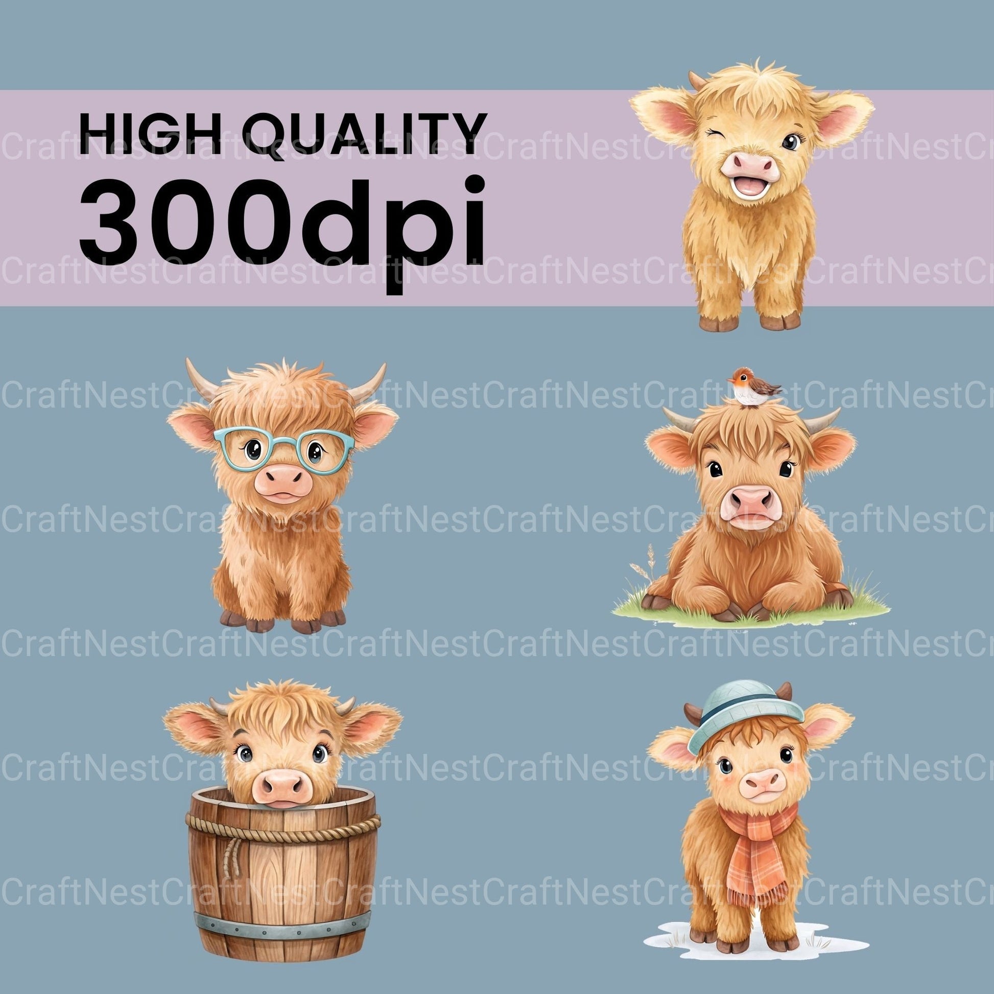 Moo with this Highland Cows 15 Clipart Bundle, featuring adorable highland cow designs, ideal for farm animal crafts.