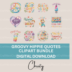 Groove with this Hippie 70S Update 12 Clipart Bundle, featuring updated 70s hippie designs, perfect for vintage boho crafts.