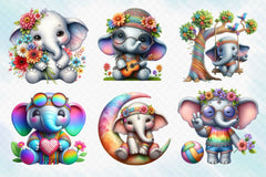 Peace with this Hippie Cute Elephant Clipart Bundle, featuring bohemian elephant designs, perfect for spiritual animal crafts.